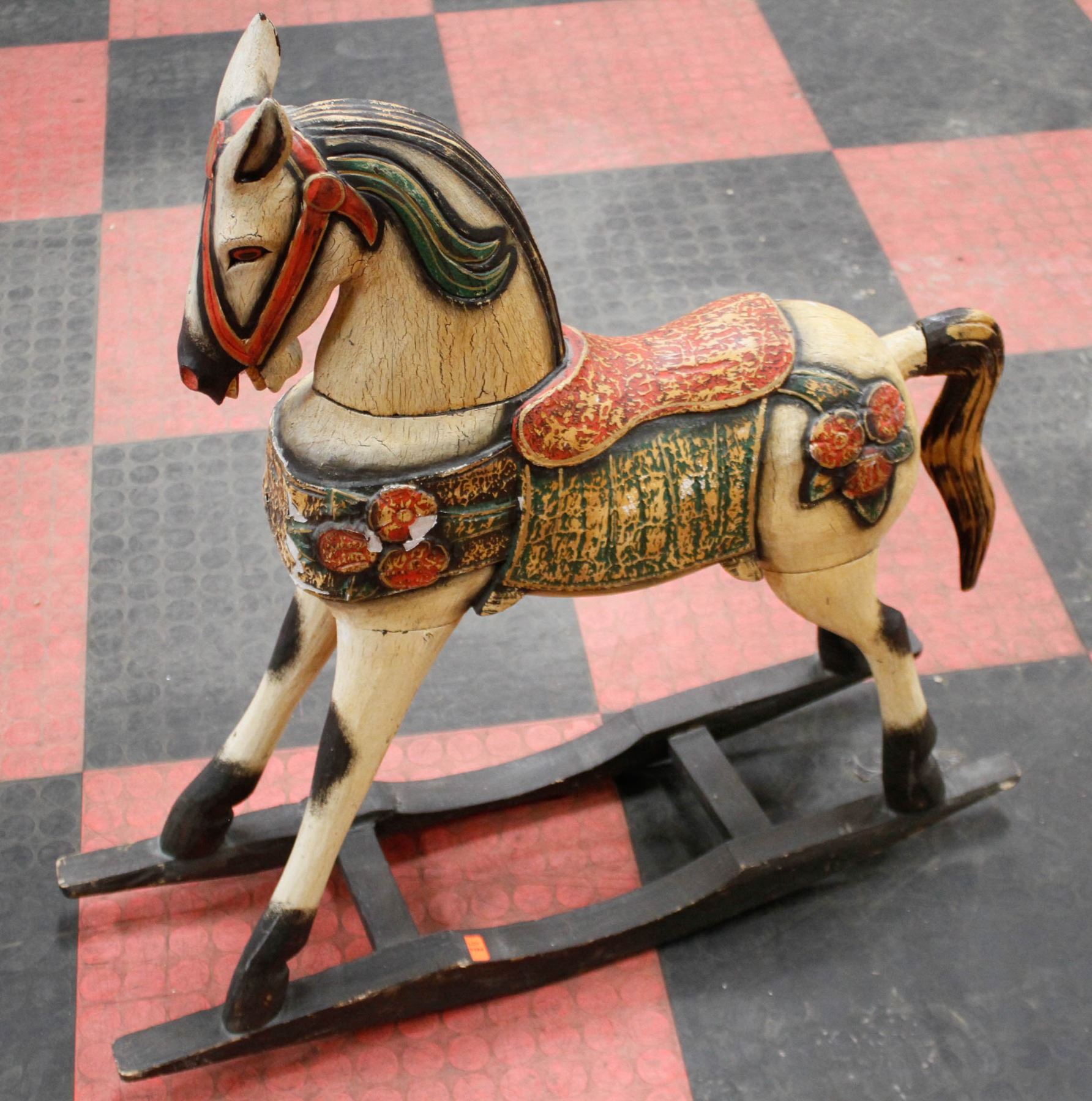 WOODEN CARVED ROCKING HORSE 33 INCH TALL