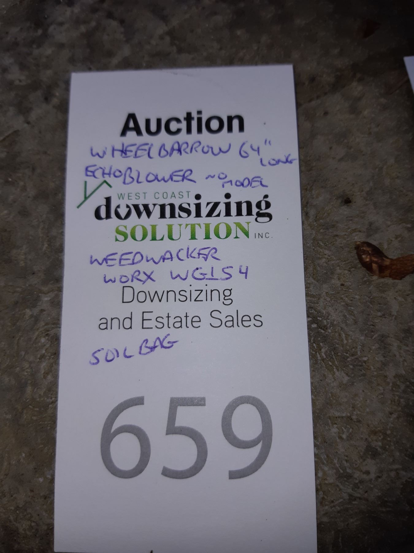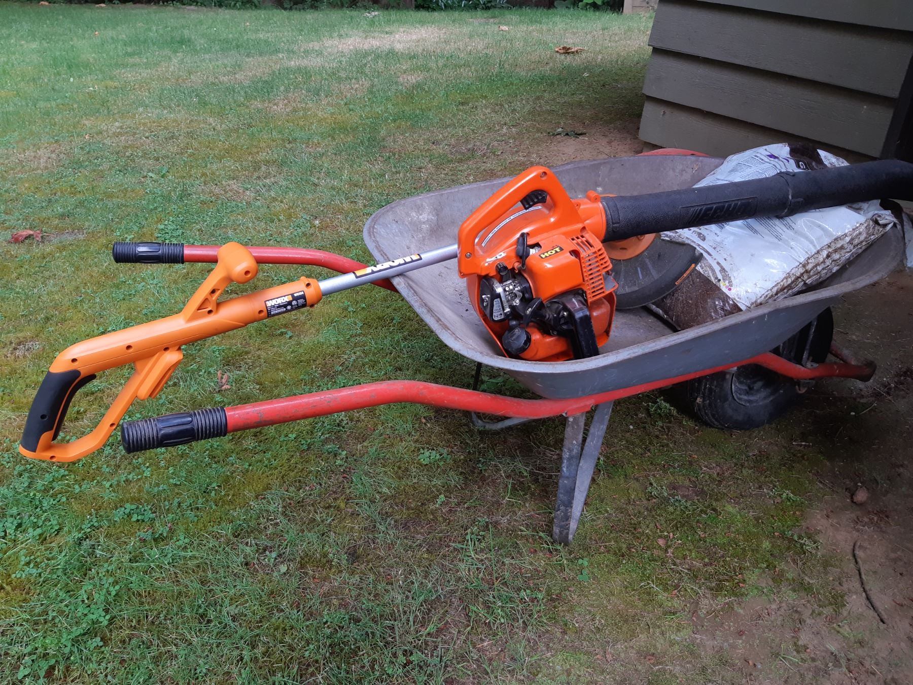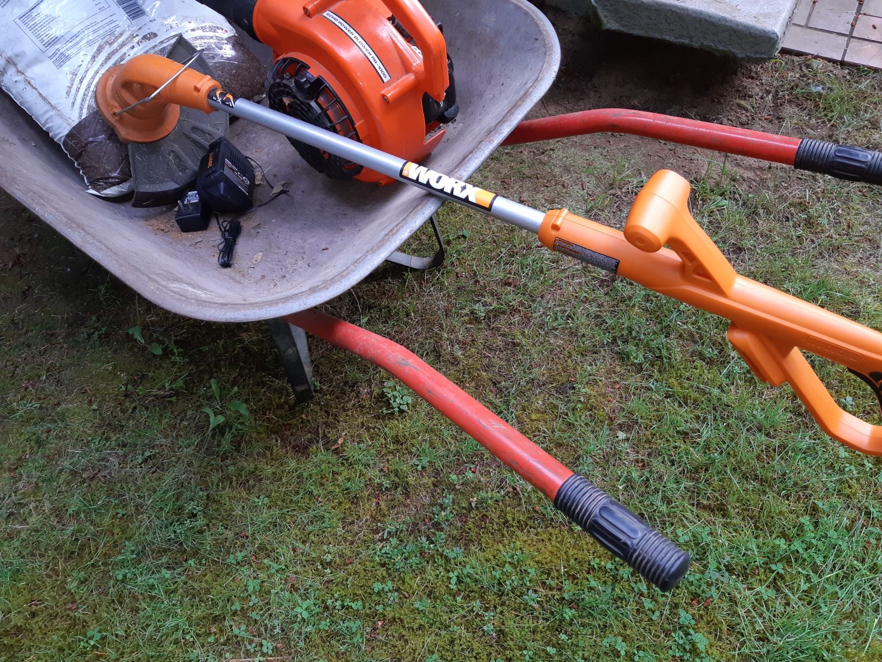 Worx weewacker WG154, Echo leaf blower, untested. bag of soil and wheel barrow. Pickup at 12:30 pm