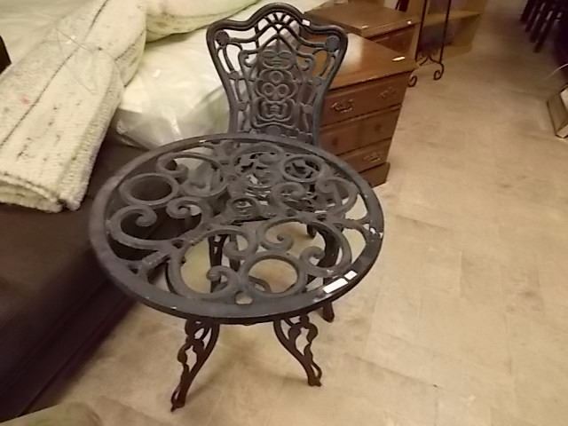 WROUGHT IRON PATIO BISTRO TABLE & 1 CHAIR