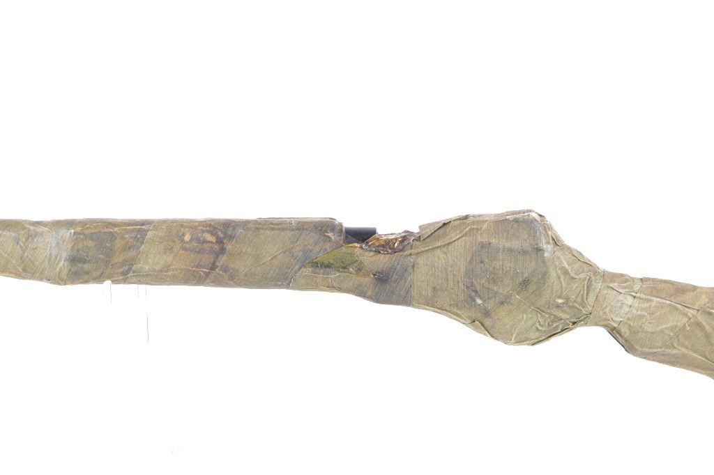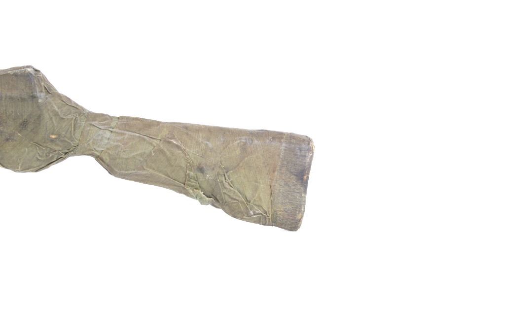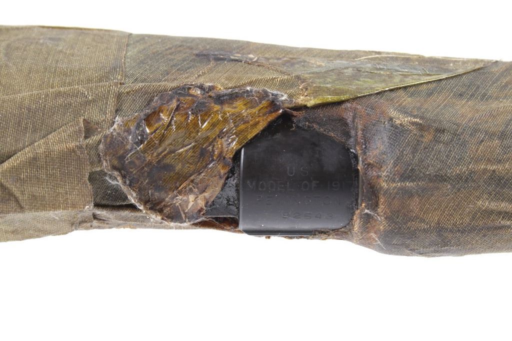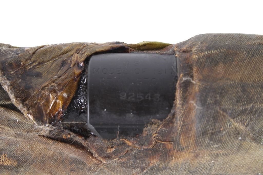 Featured in this lot we have a Remington Model 1917 Enfield bolt action rifle chambered in .30-06 and wrapped. This Enfield rifle, also called the United States Rifle, was manufactured between 1918 to 1919 and used for the first World War. It was sent to the U.S. Armory after the war were it was treated with cosmoline and wrapped to be shipped. This rifle arrived at Omaha Beach with Army Ambulance driver Victor G in June 1944 and served in the war till Victor was discharged in 1946. The Enfield traditionally features a bolt action with a hardwood stock and 26" long round barrel. The rifle is fully wrapped with a section cut out showing the top of the receiver marked "US Model of 1917 Remington 92543". The wrap shows good intact condition overall with some light wear across the exterior. The rifle comes with a short written history and x-rays taken of the piece. Serial Number: 92543. This firearm qualifies as a Curio & Relic firearm, and requires FFL Transfer or NICS Background Check.