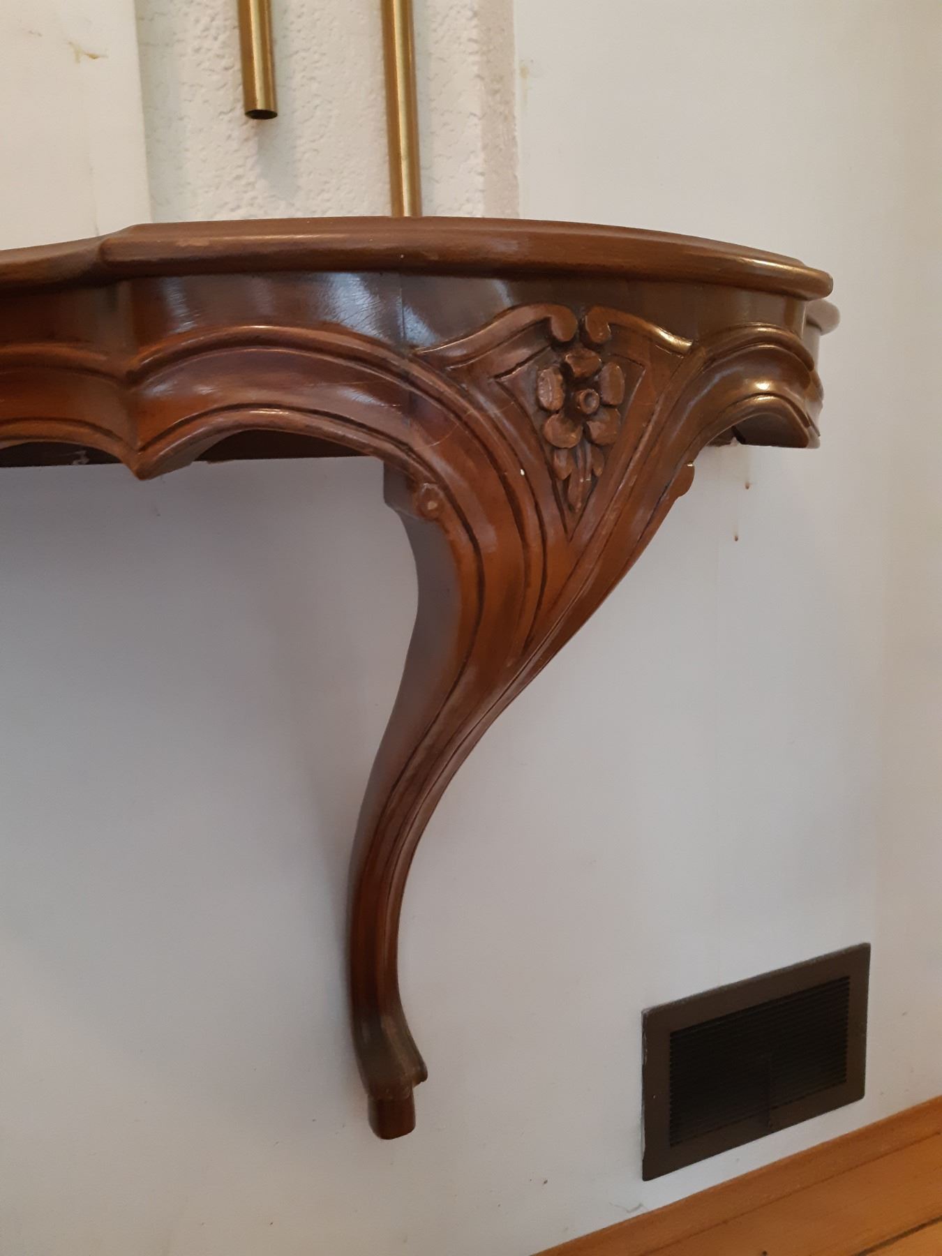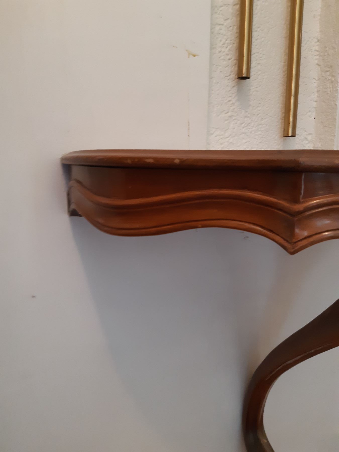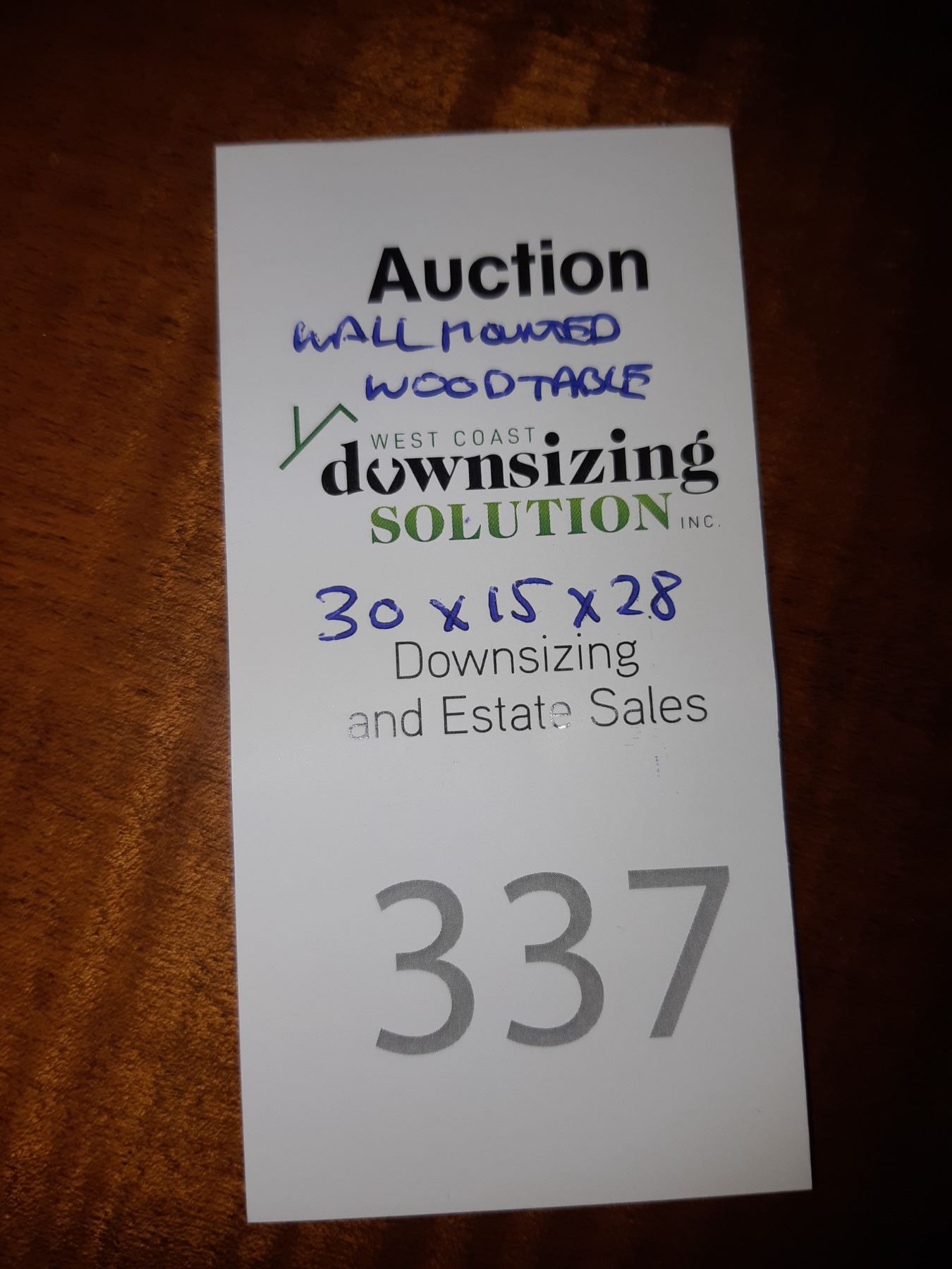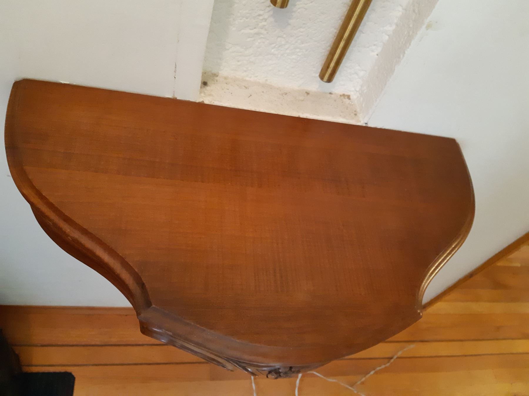 Wood hall table30x15x28 seller will remove from wall before pickup at 11 am