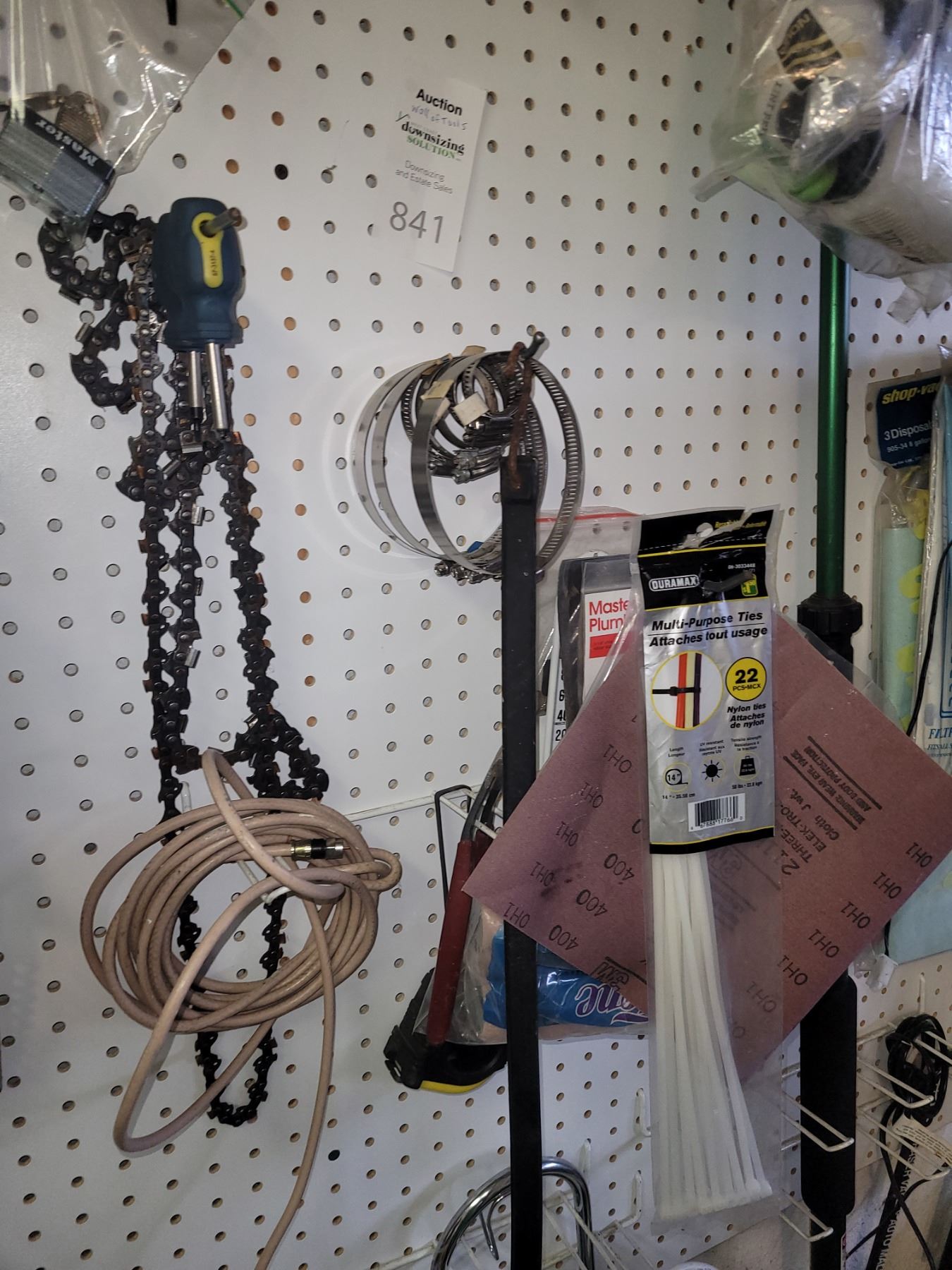 Hand Saw, Tape, Extension Cord, Rope, Work Light and more. Category A. Pick up at 9am.