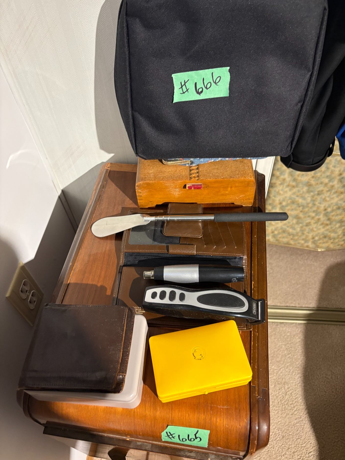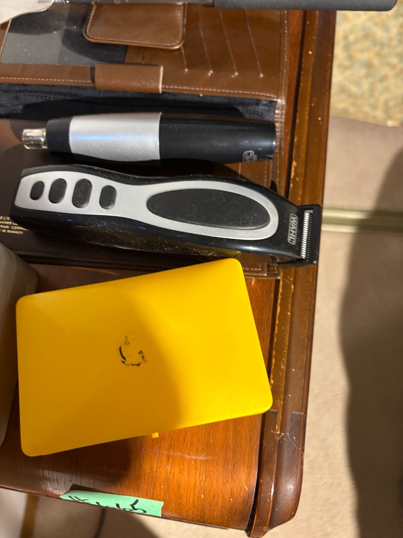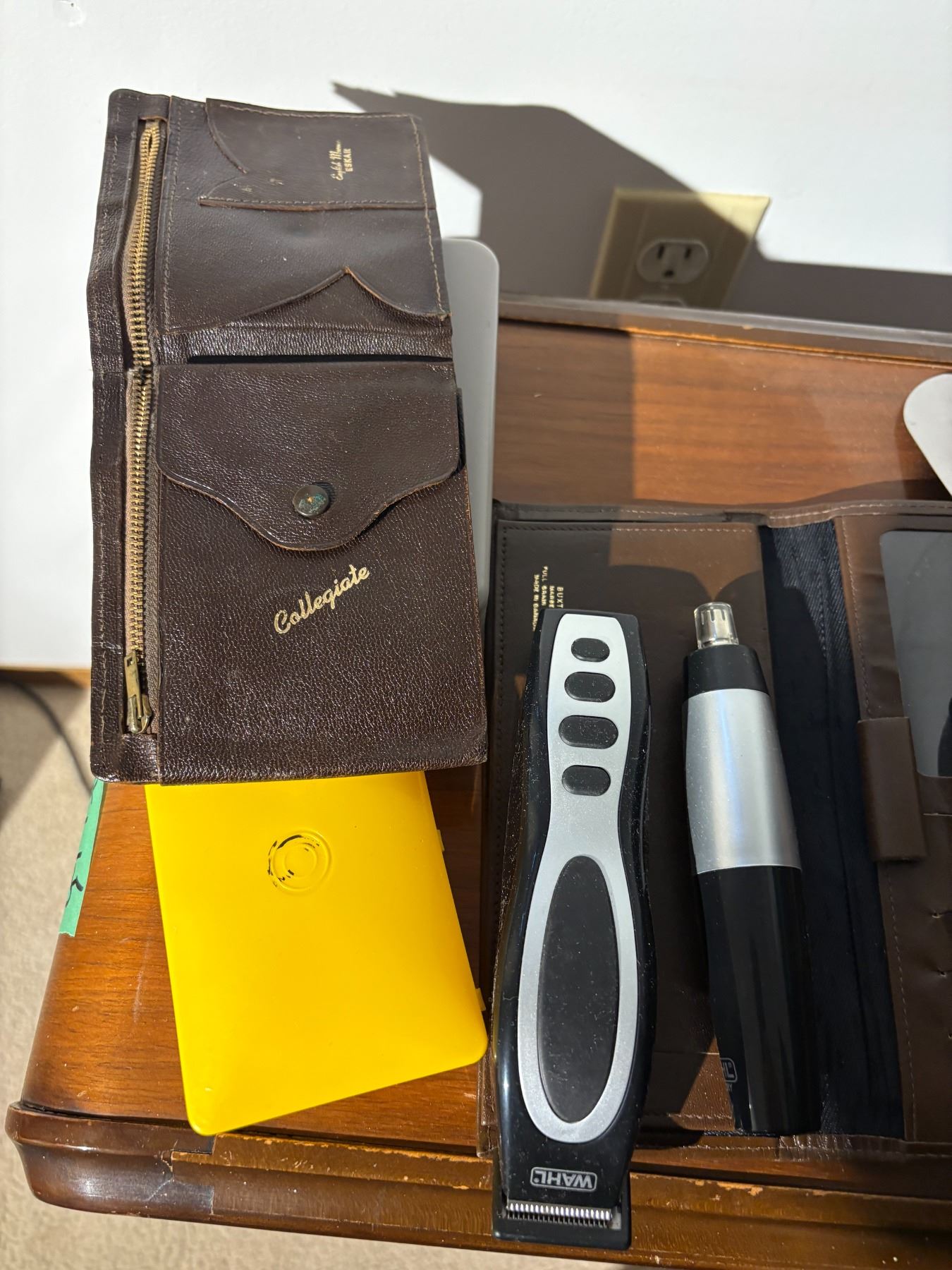 Wallets, elec. Razor, nose hair trimmer, shoe horn and misc.