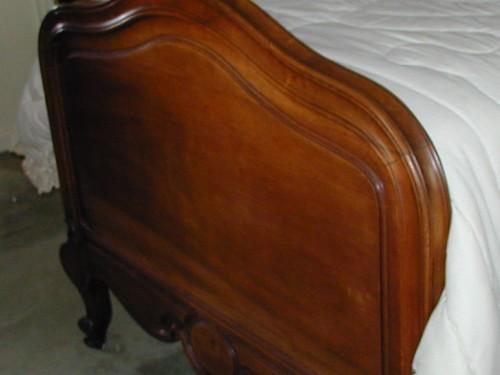 Walnut Louis XV Style Twin Bed with Heavily Carved Crest with Box Springs & Mattress; 74" long; 39 1/2" wide; 56 1/2" tall