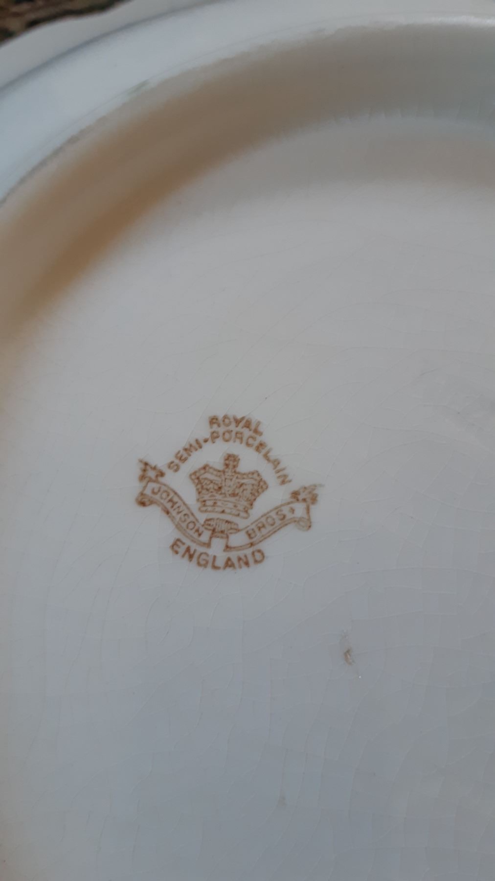 Johnson Bros. Basin and pitcher has some crazing from age. Pitcher is 11.5" high and has chip. Bring packing materials