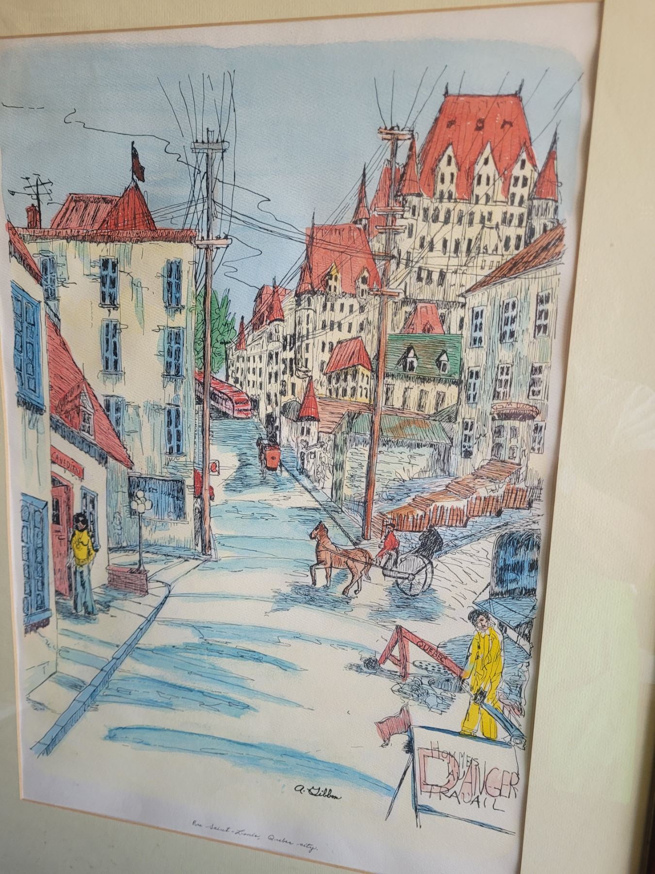 Framed water colour Rue Saint -Louise Quebec City . 22x29 Pickup at 10 am