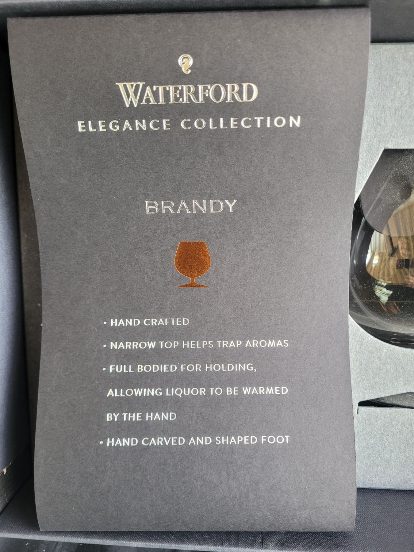 New in box Waterford Elegance Collection Brandy Glasses, 2 in box. Pickup at 9 am