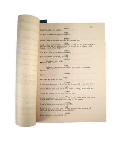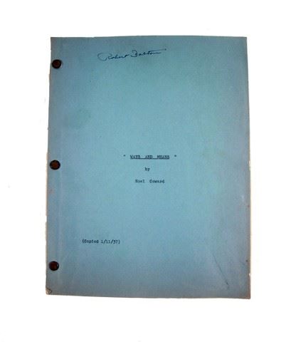From the stage play Ways and Means by Noël Coward is an original hand typed production manuscript. This measures approximately 11" x 8 1/2".