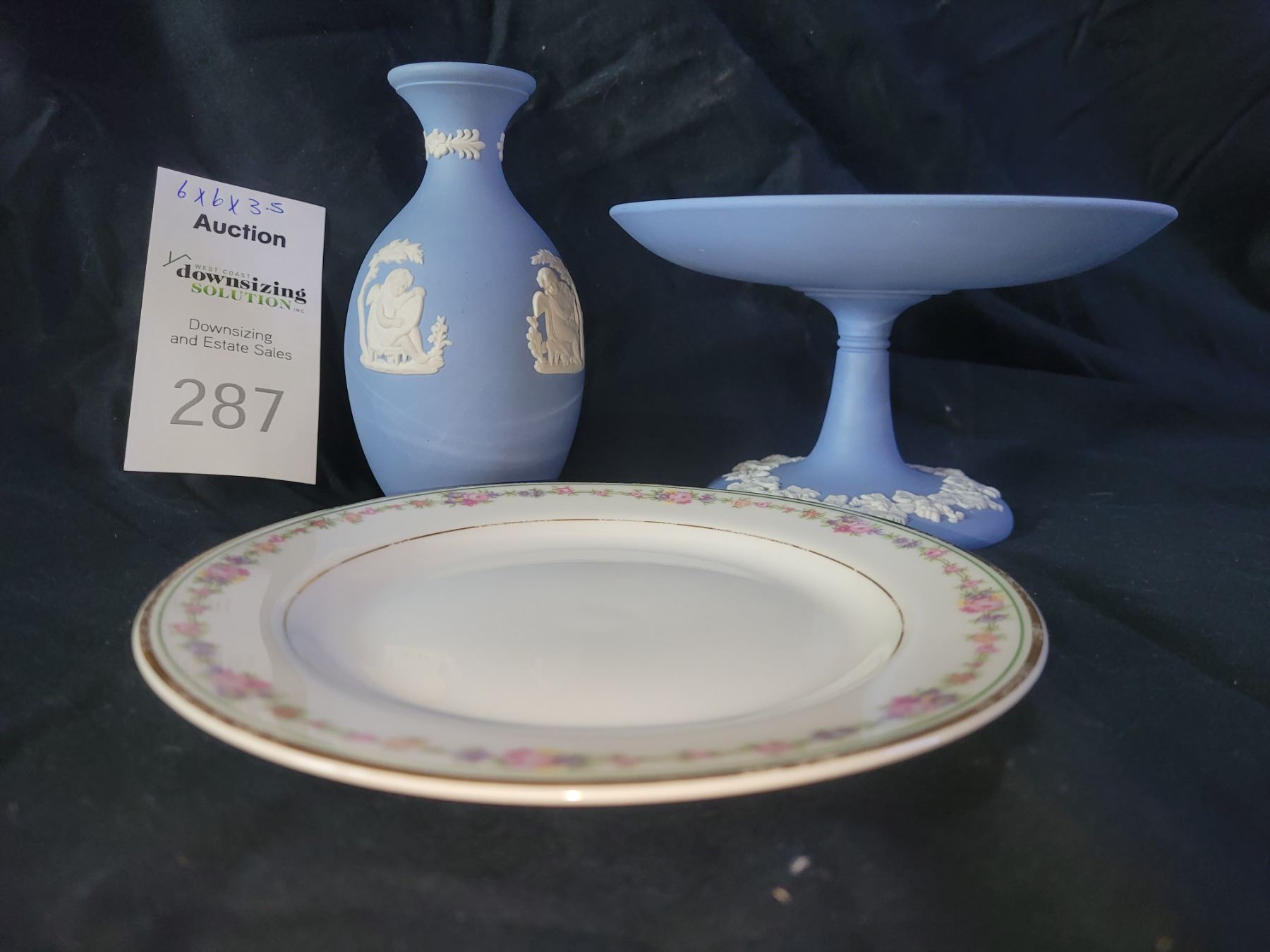 Footed candy dish 6x6x3.5 & vase. Limoges side plate. Pickup at 9 am