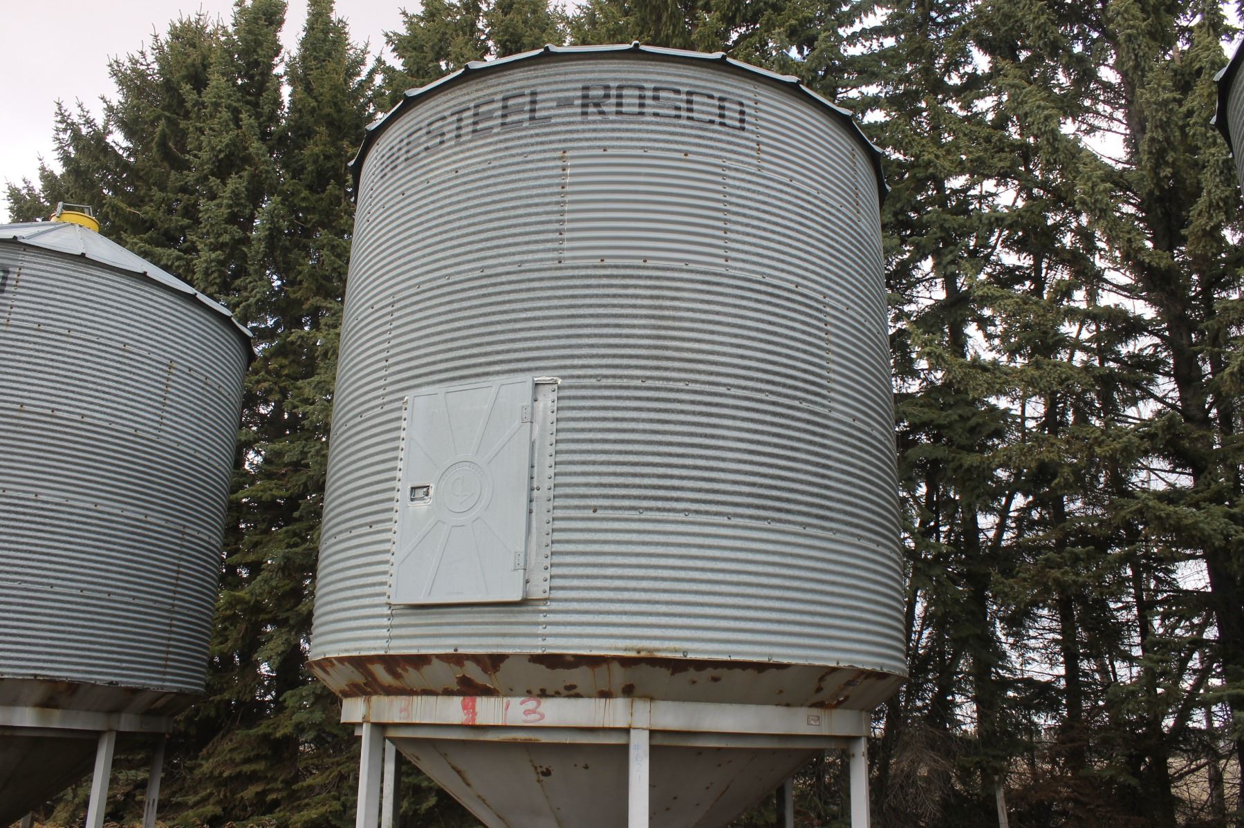 Westeel Rosco 5 Ring Hopper Bins (Bolted to Concrete) Located; from Auction Yard, 9 km North on RR 214 to Twp 590, 1 km West to 21417, PH 780-782-1156