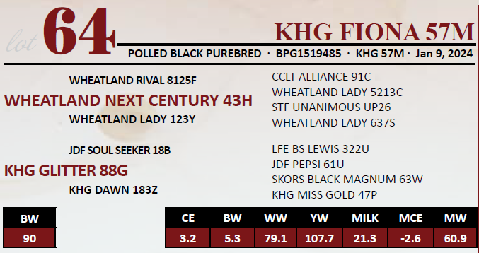 KHG FIONA 57M - Homo Polled - Bred to TSF Missouri 25M. Exposed March 15 - May 20. Due Jan 1.