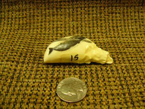 Whale Tooth - very fine in detail scrimshaw of breaching whale 2.5" long (33)