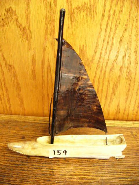Whale bone and baleen sailing ship, boat is in form of a whale 6" long (2)