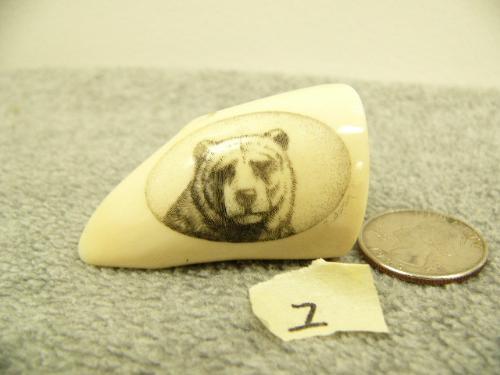 Whales tooth scrimshawed with bear 2" signed by T. Swan (33)