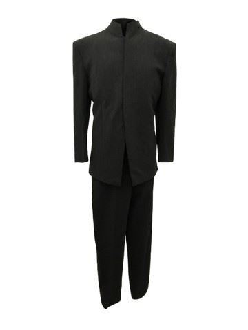 What Planet Are You From? (2000) - Harold Anderson (Gary Shandling) screen worn, custom designed by Dominic Gerardi, suit, charcoal gray suit jacket with a zipper and hidden snaps, and custom designed suit pants with black suspenders sewn in. Includes a mesh, black and silver insert and a custom label with his name typed into it.