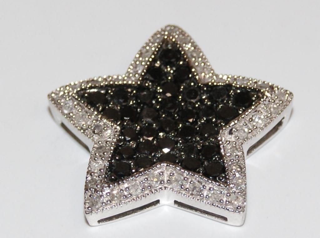 Retail Value $4,940 14Kt White Gold -- White & Black Diamonds Star Design Pendant --