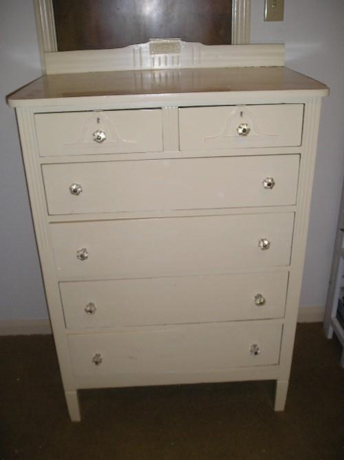 White dresser with glass knobs measures approximately 31"L x 20"D x 45"H.