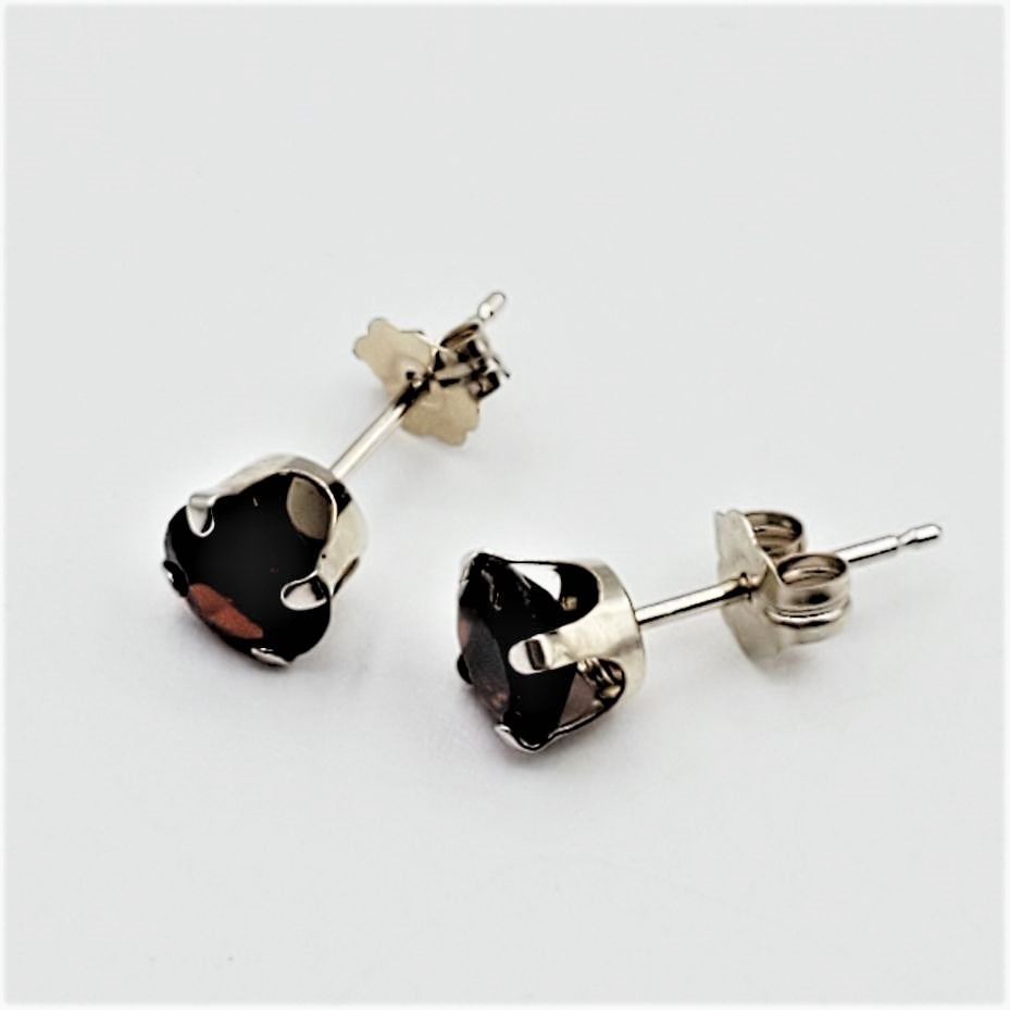 10kt. White Gold 5mm x 5mm genuine Garnet stud Earrings, 1.25cts, With appraisal of $440.00, Garnet is the birthstone for January.