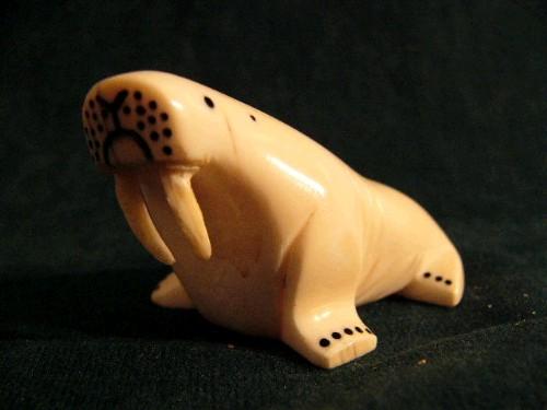 3 1/2" White Ivory Walrus, old style carved in 1970's (37)