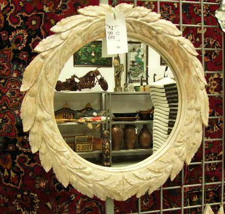 Whitewashed round wreath style mirror- 23-1/2" H, 23-1/2" W (1)