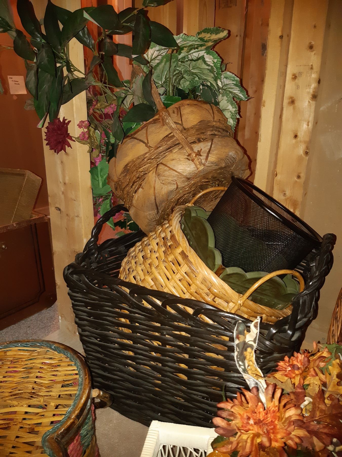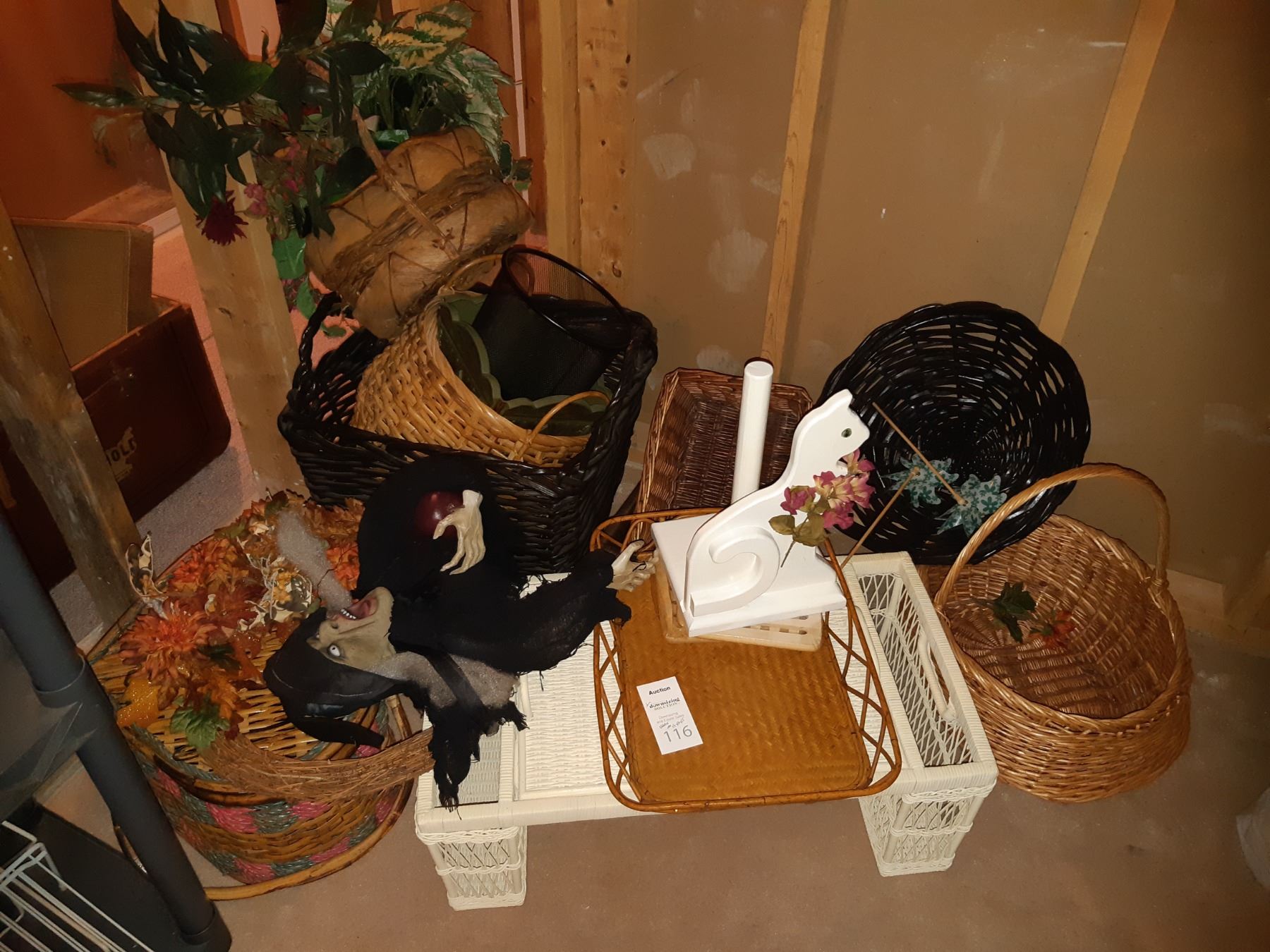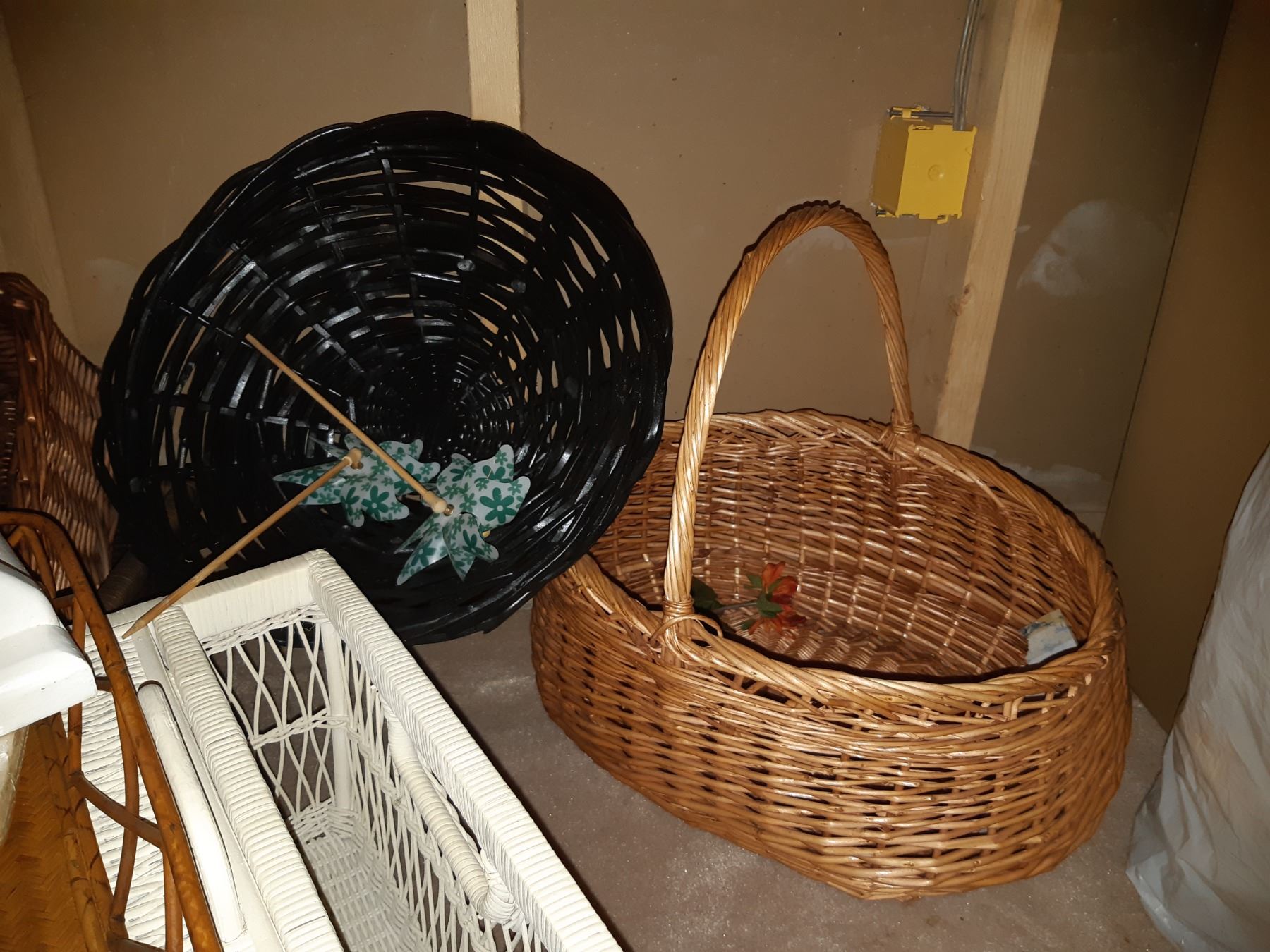 Assortment of wicker baskets and bed tray. Pickup at 11 am