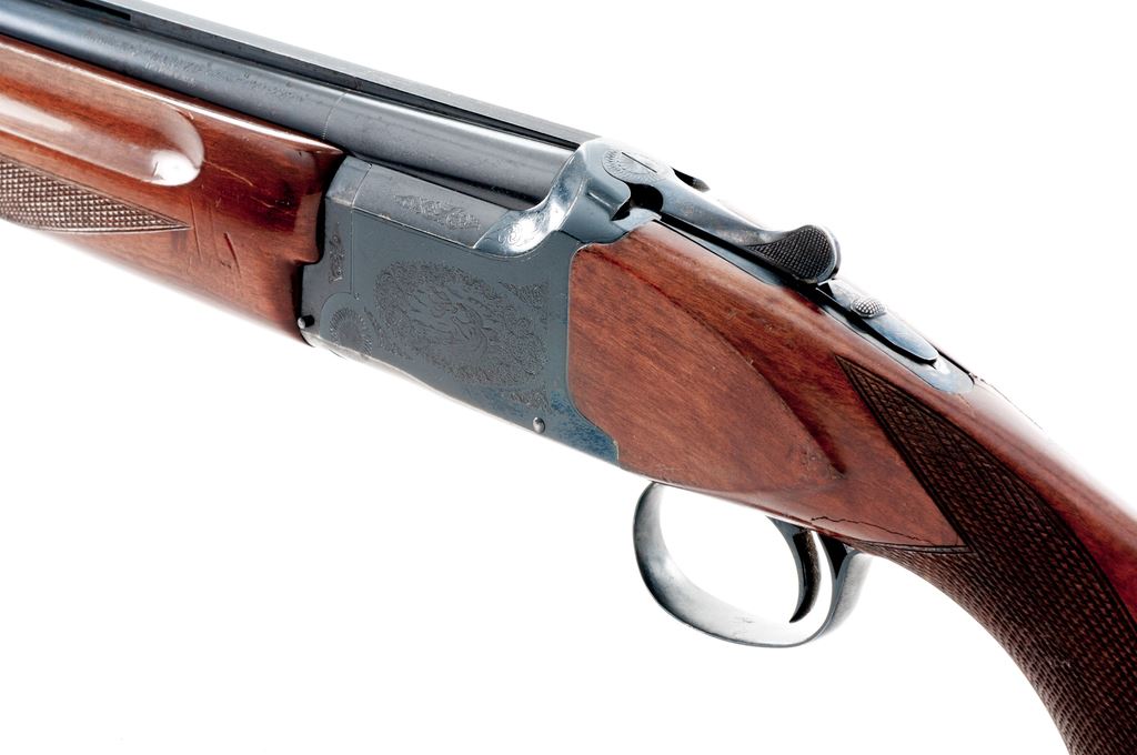 Winchester Model 101 XTR ''Lightweight'' Over/Under Shotgun, #K530290E, 12 ga. 28'' vent rib barrels have 2-3/4'' chambers and are choked Mod./Full. Boxlock action features a single selective trigger, auto ejectors and non-auto safety. Semi-beavertail forend and pistol-grip buttstock are Standard Grade walnut, without grip cap but with a black Decelerator butt pad. Mfg'd mid-1980s by Nikko in Japan for Winchester, contained in Browning hard case. Condition is fair, with extensive field use and perhaps poor storage. There are numerous mars and dings to wood, edgewear to action, and light frosting to barrels. Action is not loose, but is certainly broken in; it functions correctly and is still shootable; bores are bright. Would be a good backup waterfowl gun. Est.: $350-$450. (Modern)