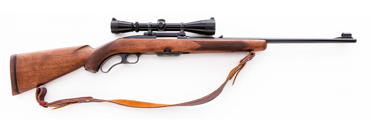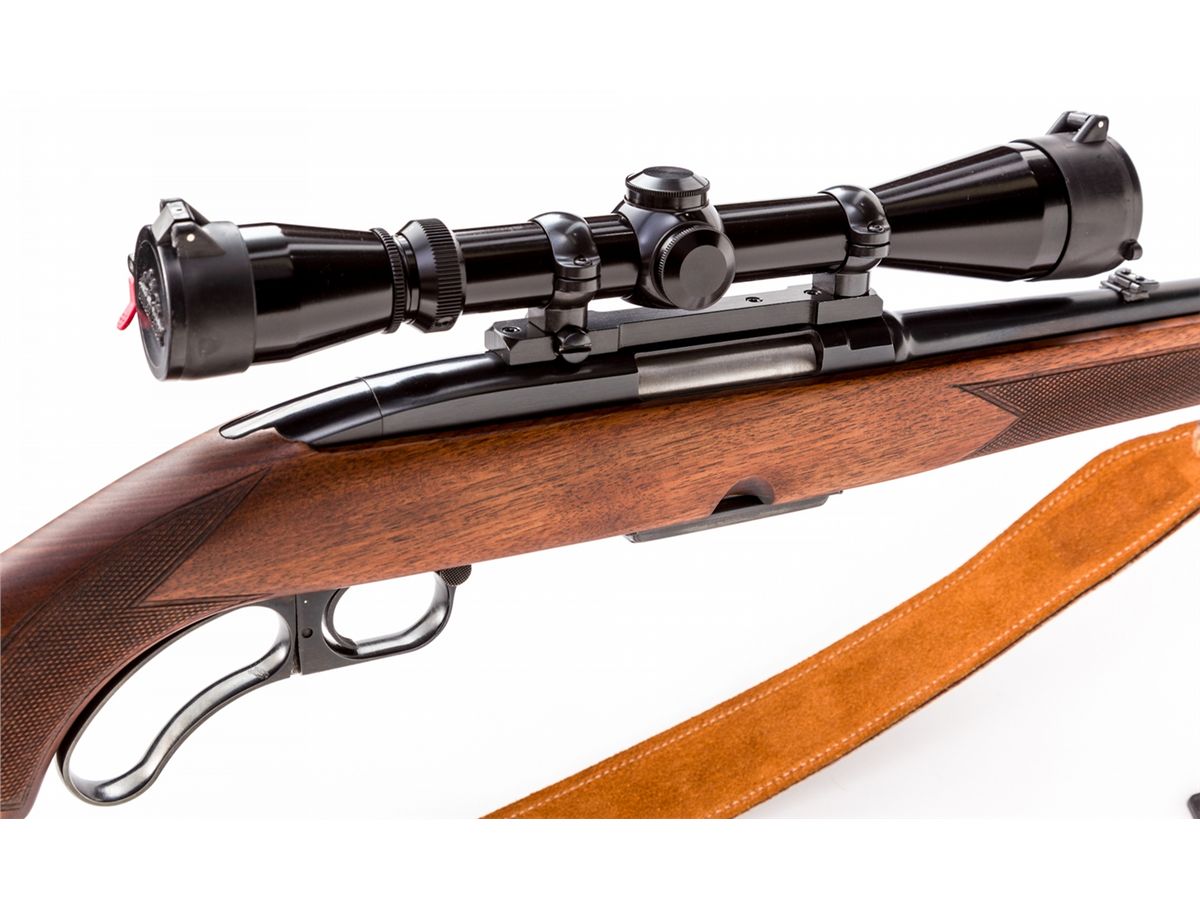 Winchester Model 88 Lever Action Rifle, #75935, .308 Win. cal., 22'' barrel, blue finish, checkered walnut stock, Winchester red rubber butt pad, Winchester magazine, hooded front sight, and brown leather commercial sling. Topped with a Leupold 3x9 scope with covers. Condition is fine to near excellent retaining approx. 97% original factory blue. Stock has later accomplished oil finish which shows well; checks with mild flattening. Action is crisp, bore is mirror bright. Est.: $500-$750. (C&R)