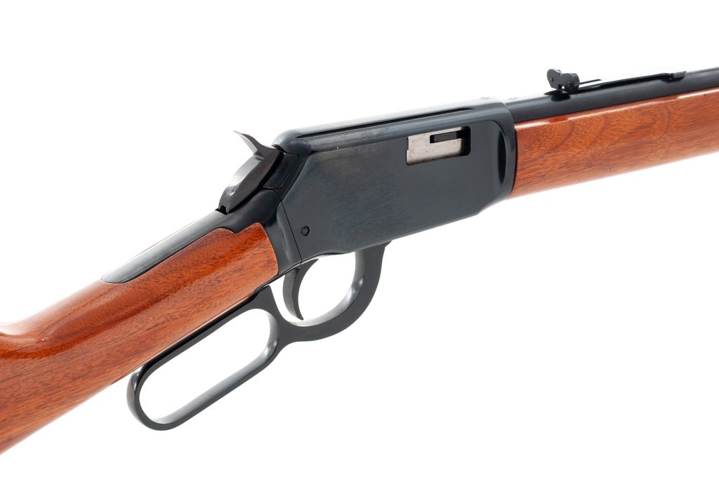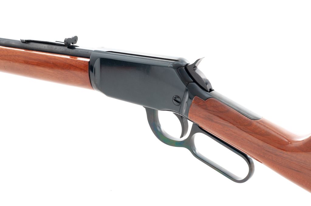 Winchester Model 9422 XTR Lever Action Rifle, #F346807, .22 Win. mag., 20-1/4'' round barrel, blue finish, uncheckered straight grip walnut stock and forend, factory black composite Winchester buttplate, ramped and hooded silver bead front sight, standard elevator rear sight, with factory grooved receiver. Metal is excellent retaining approx. 98%+ factory blue finish, with a few intermittent tiny surface nicks. Wood rates as fine with normal scattered light handling marks, most noticeable on the wrist and forend, and retains nearly 100% of its gloss finish. Rifle was used as a display in the casino and right side of stock and forend are just a little lighter in color. Action is crisp with a smooth hammer and trigger; internally a clean rifle with a mirror bright bore; if fired it appears to have been fired very little. Est.: $600-$800. (Modern)(Sierra Sid's Casino, Sparks, NV.)