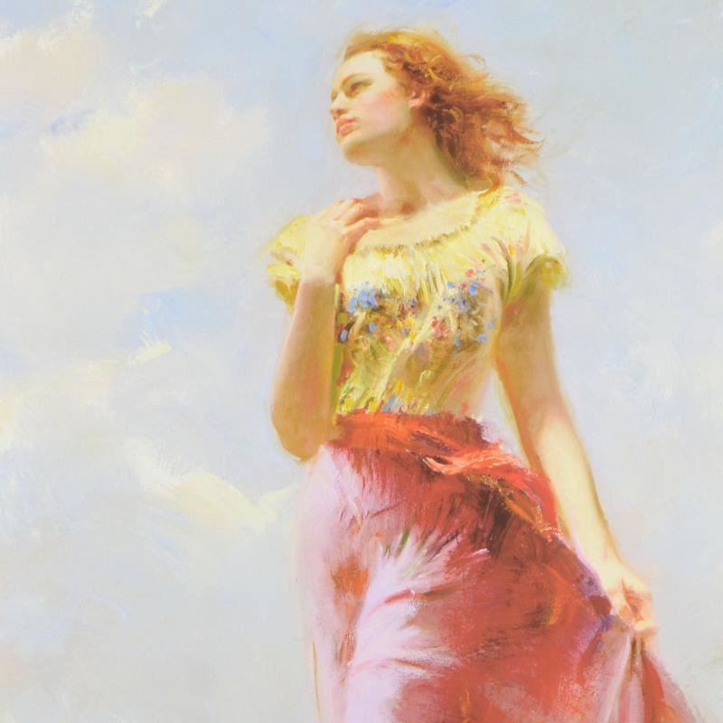 Wind Swept is a limited edition giclee on paper by Pino (1939-2010). The piece comes numbered and is hand signed by the artist. Includes Certificate of Authenticity. Measures approximately 20 x 12 (image).