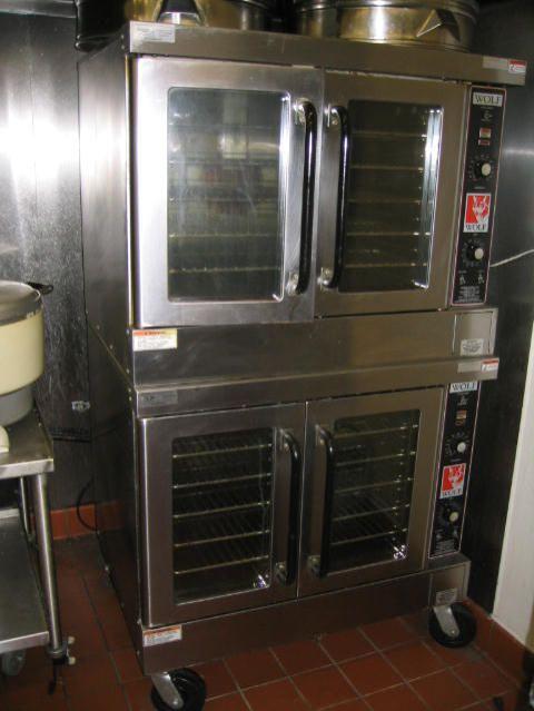 Wolf double section gas convection oven w/ caster upgrade. Approx. 70" X 40" X 32" deep. Interior rack size 22" X 28". This unit new is $7500 dollars and the casters are a $310 upgrade.