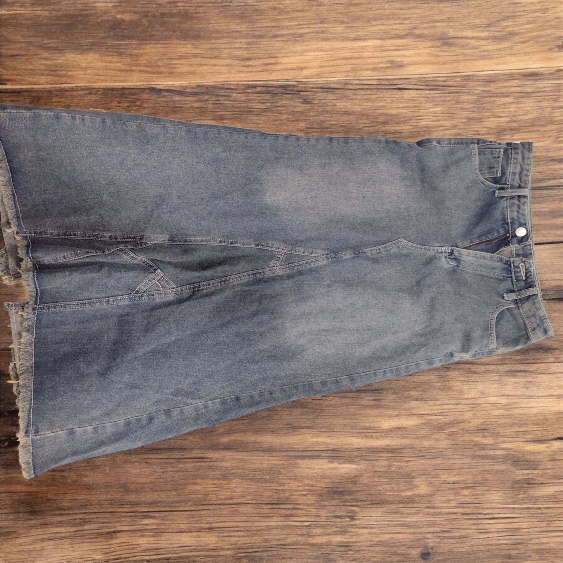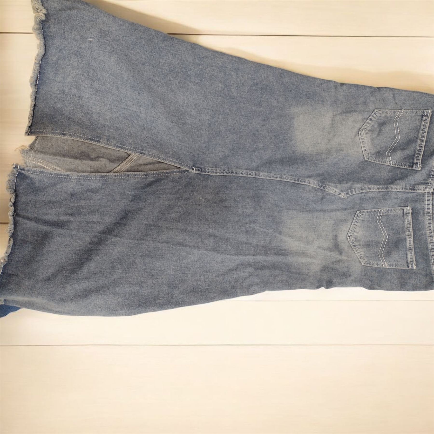 Women ice blue Denim skirt midi with black and greycheck Shirt Size M