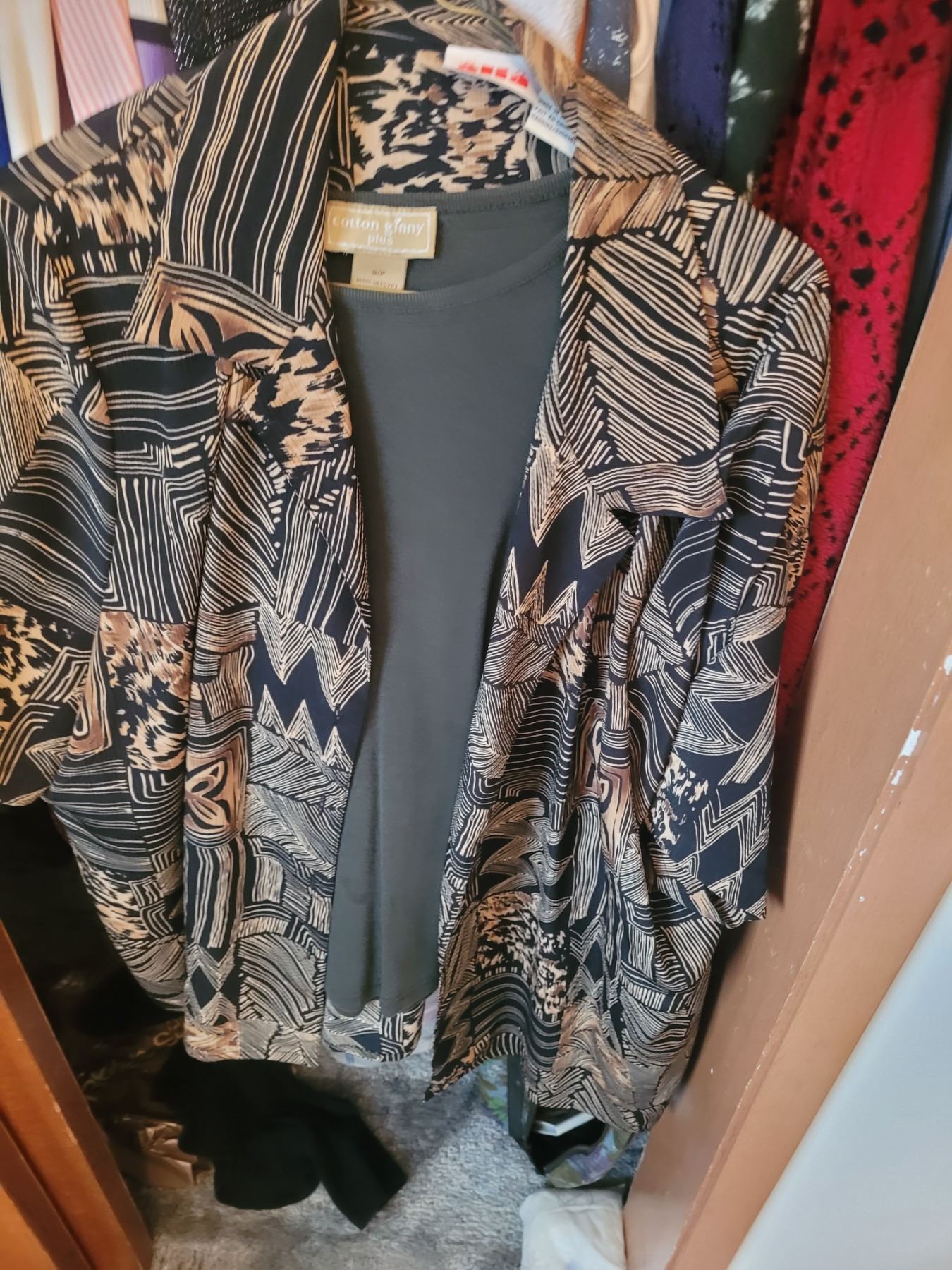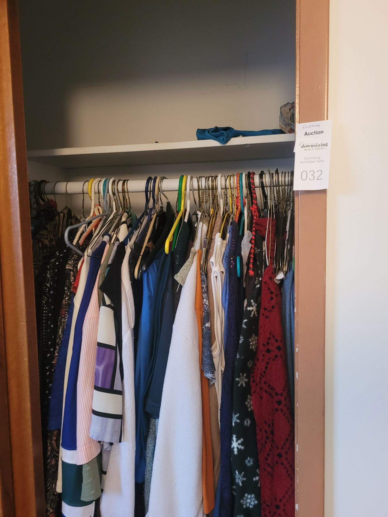 Blouses, sweaters, jackets, slacks size large, extra large. Pick up 9-10