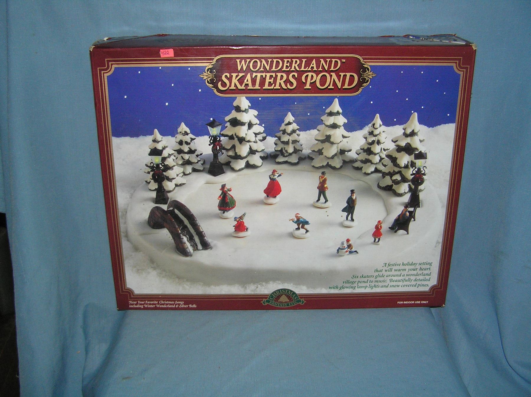 Wonderland holiday illuminated skaters pond with original box est. value 125.00-150.00