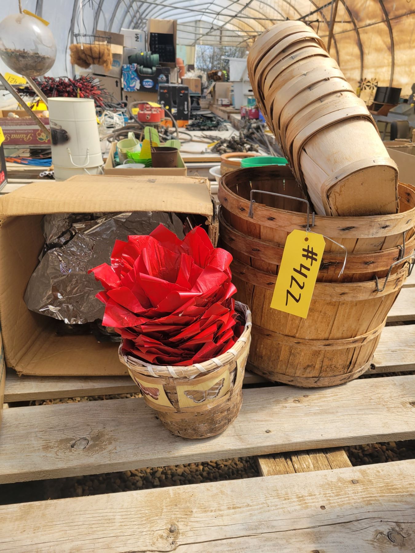 Wood Bushel baskets & foil wrappers