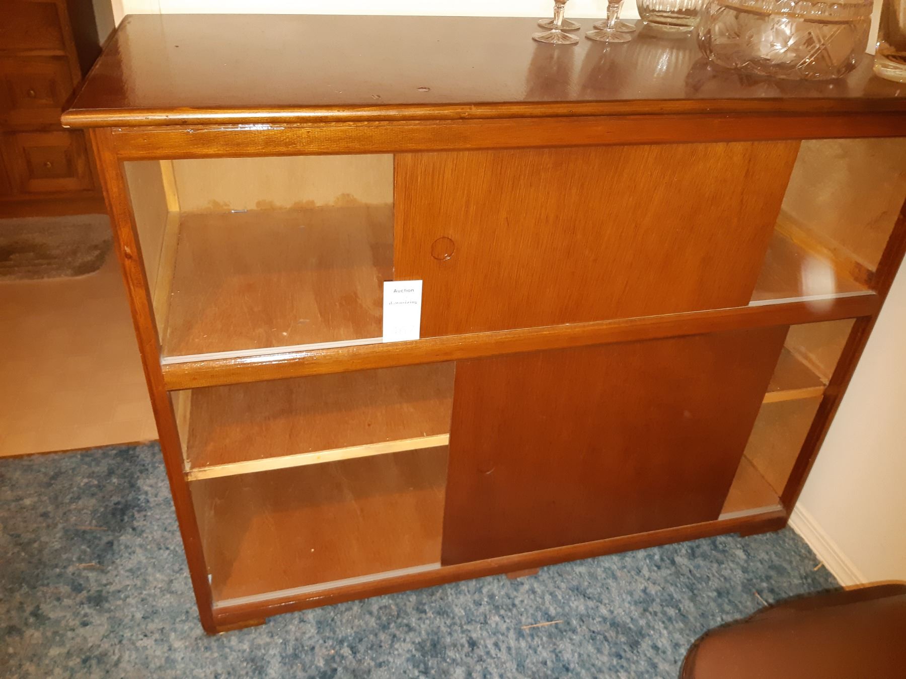 Sliding door cabinet. Note some scratches 46x21x36. Bring help to remove and pickup at 11 am