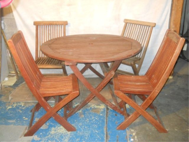 Chairs. 2 Of The Chairs Are From Wellsey Monor Teak Furniture Co. Two Are Regular Wood Chairs