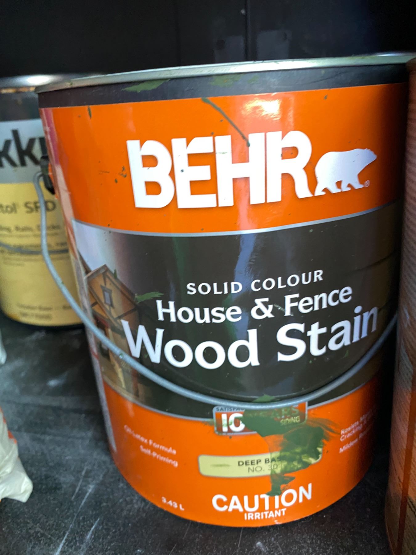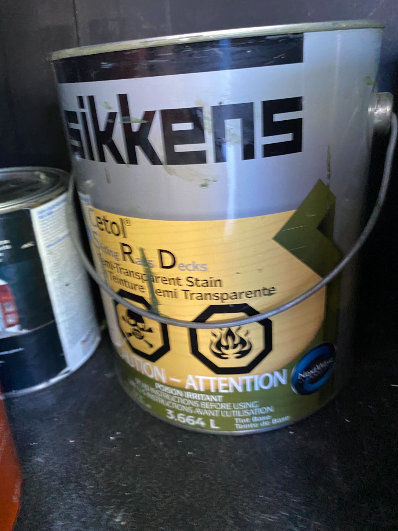 Tremclad gloss rust paint, brushes, outdoor wood stain, roof coating, paint thinner, more. Pick up 9-10