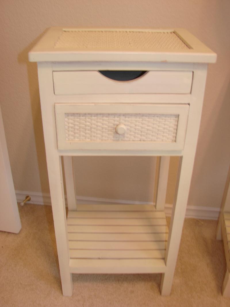 Wood & white wicker nightstand w/2 drawers,apprx. 31" tall
