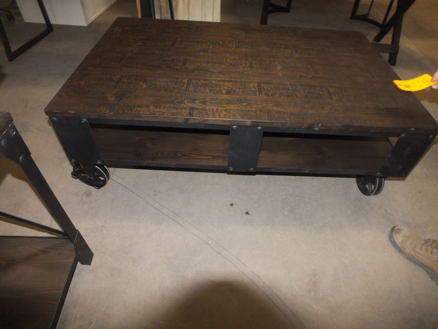Wooden Coffee Table on wheels 52"l 32"w 17"h & End Table 26"x22"x24 1/2"h....show home