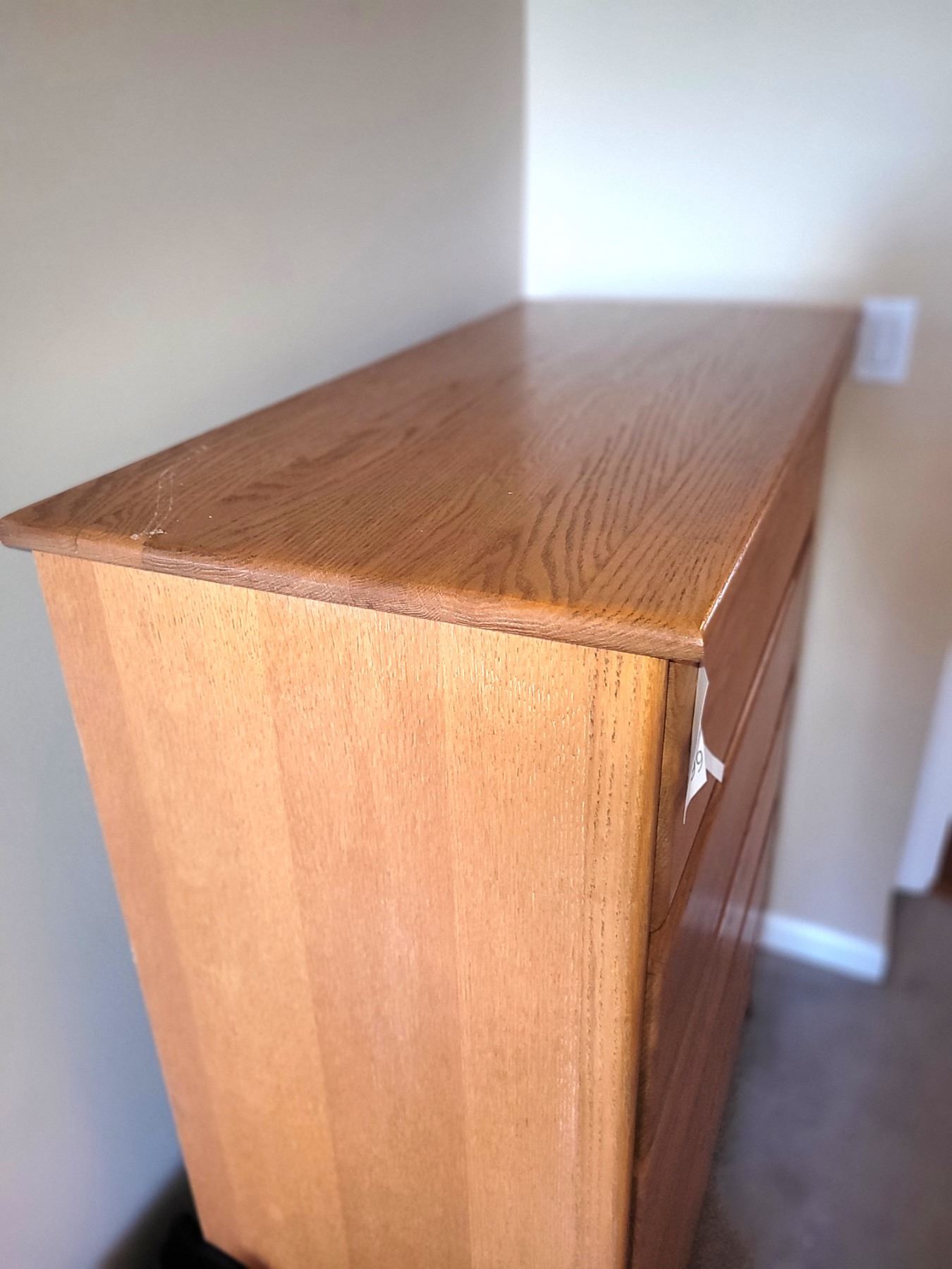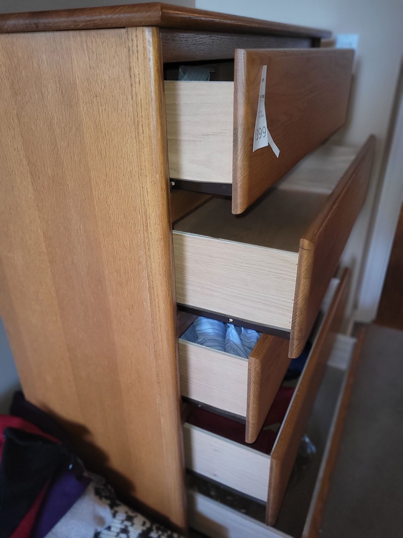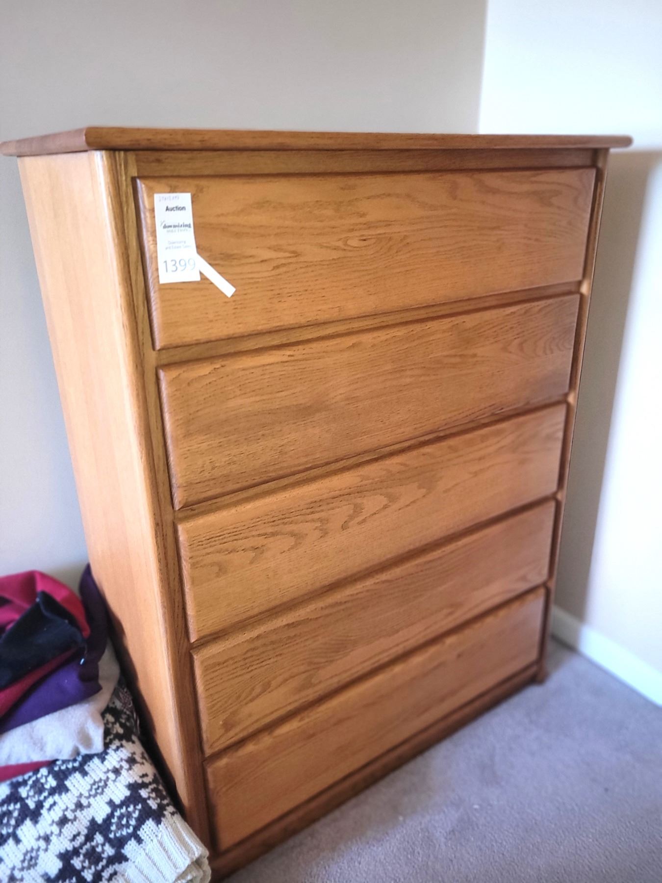 37x18x48" wooden 5 drawer dresser. Heavy bring help. Pickup 11-12pm.
