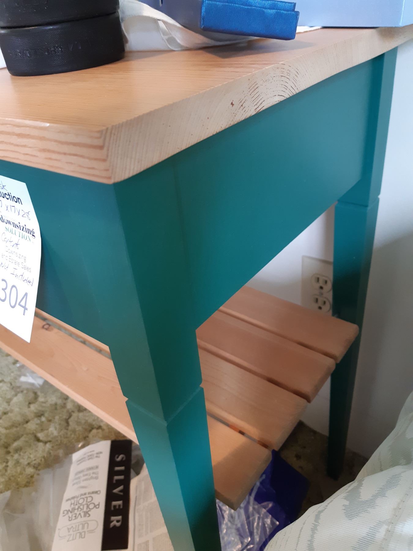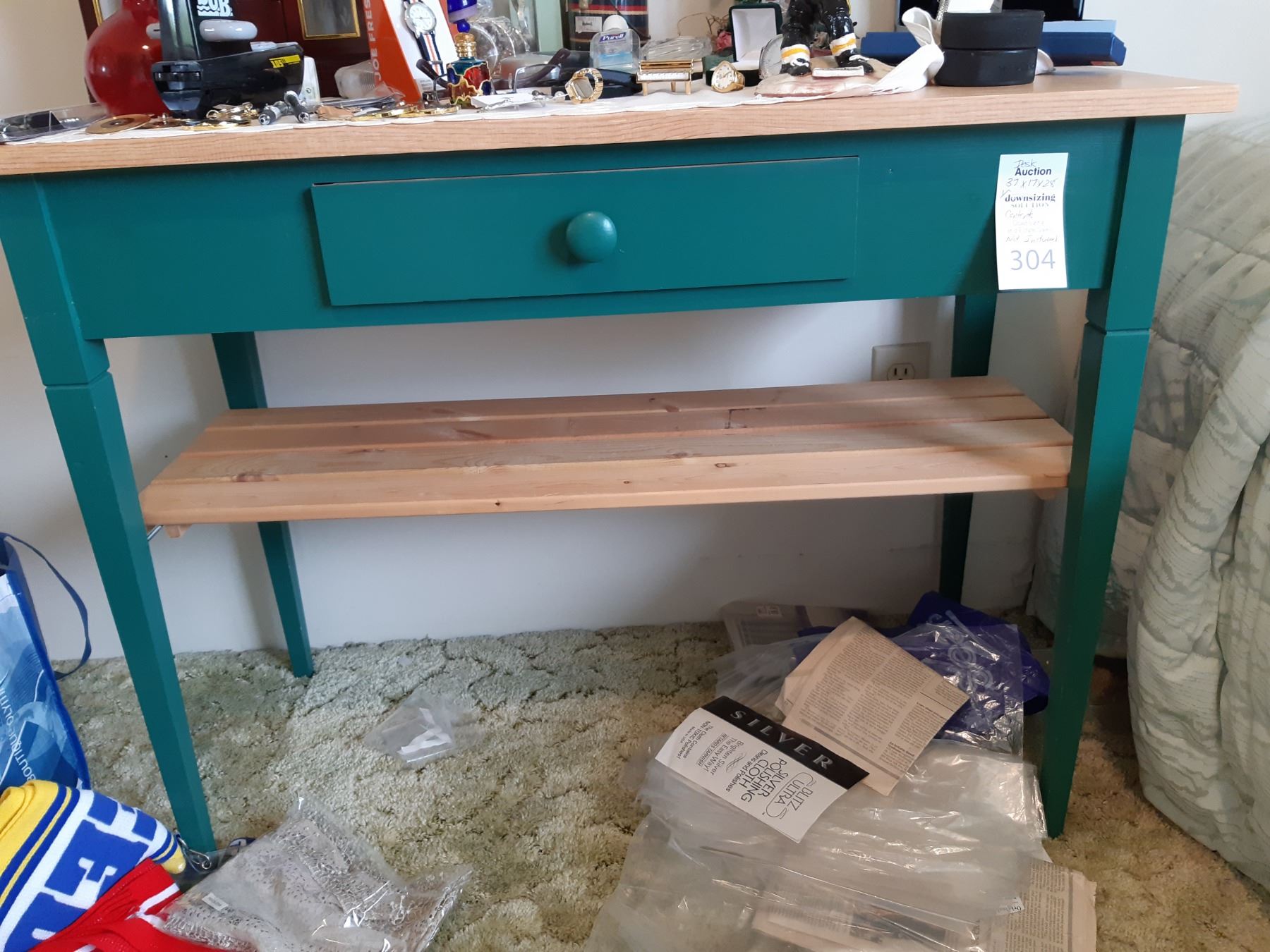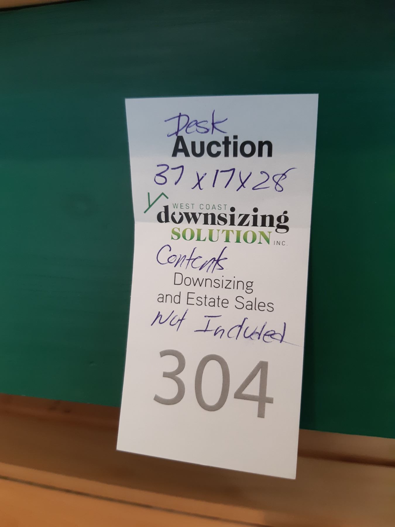 Green wood desk, contents not included, 37x17x28. Pickup 12 pm