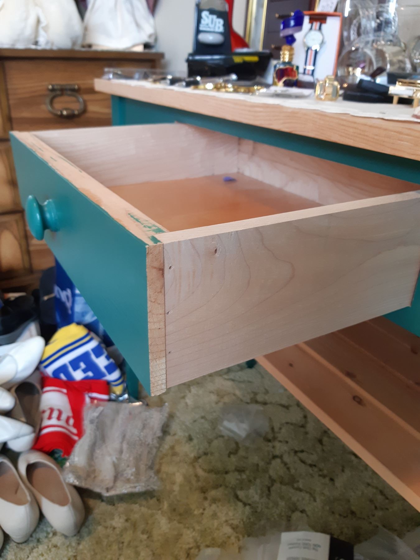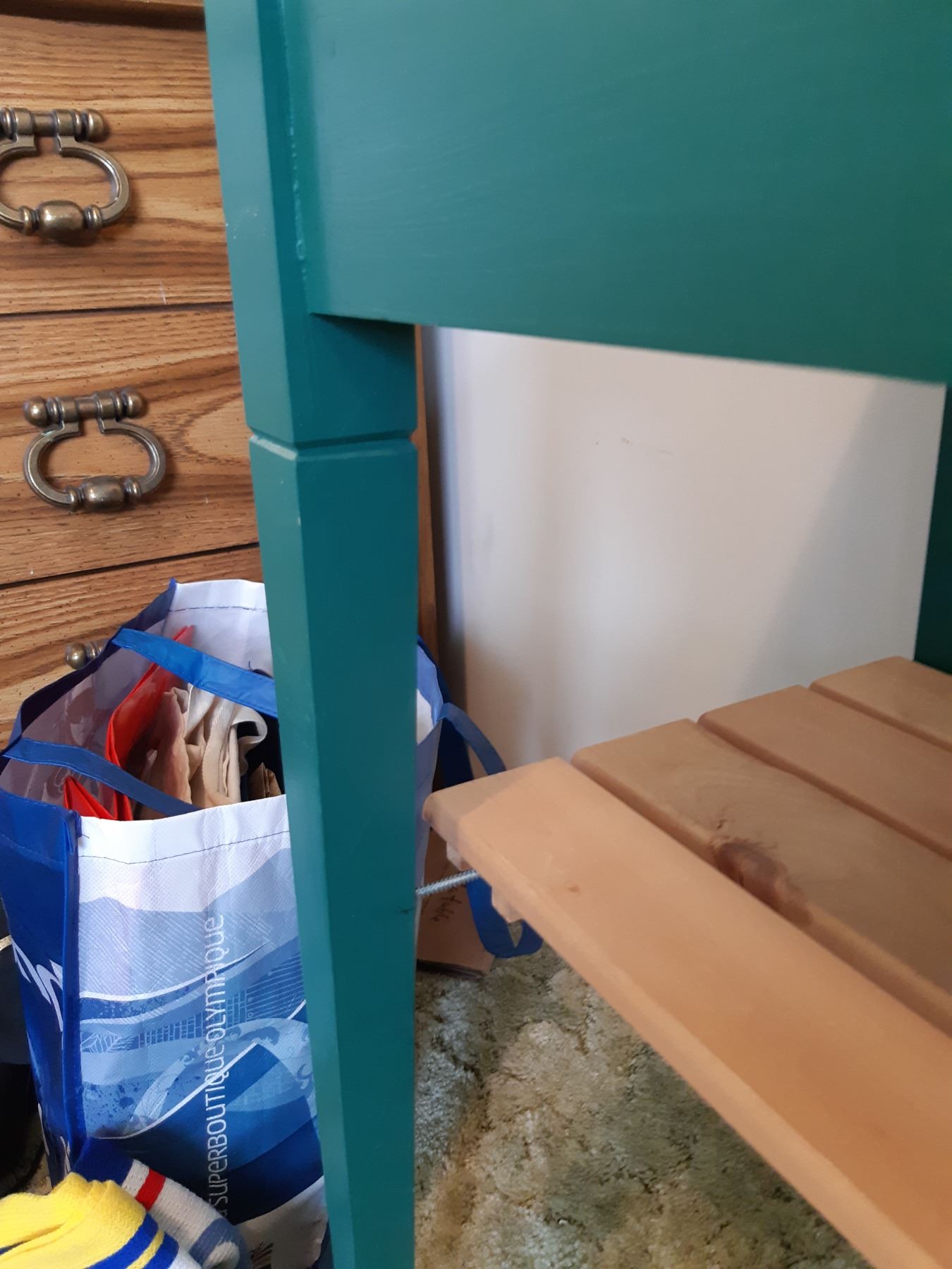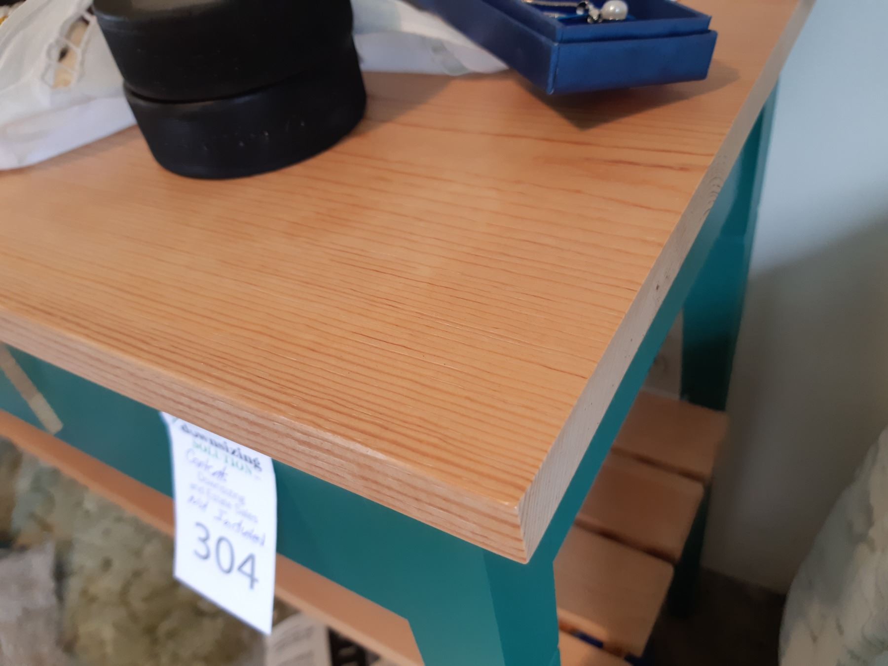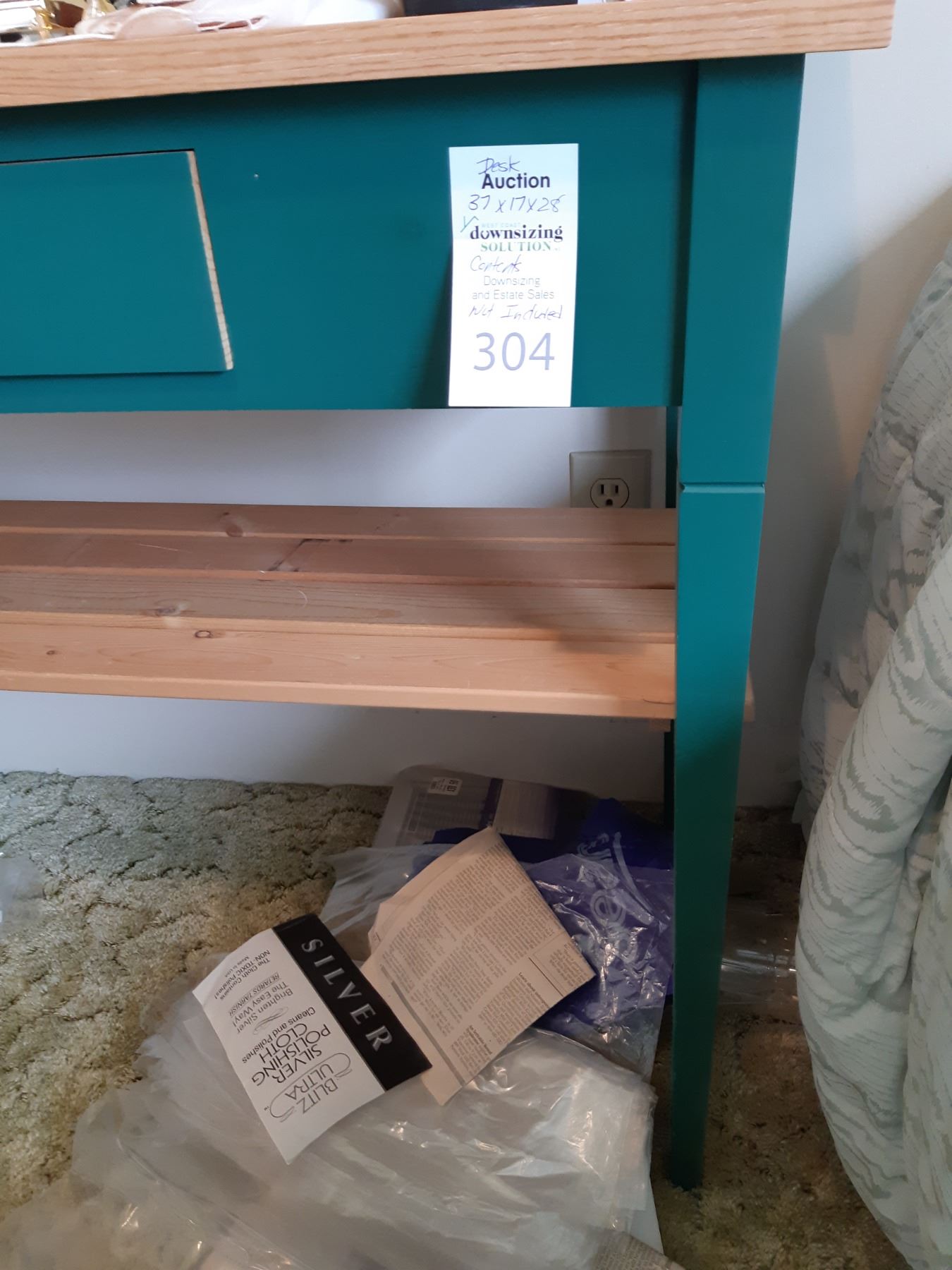 Green wood desk, contents not included, 37x17x28. Pickup 12 pm
