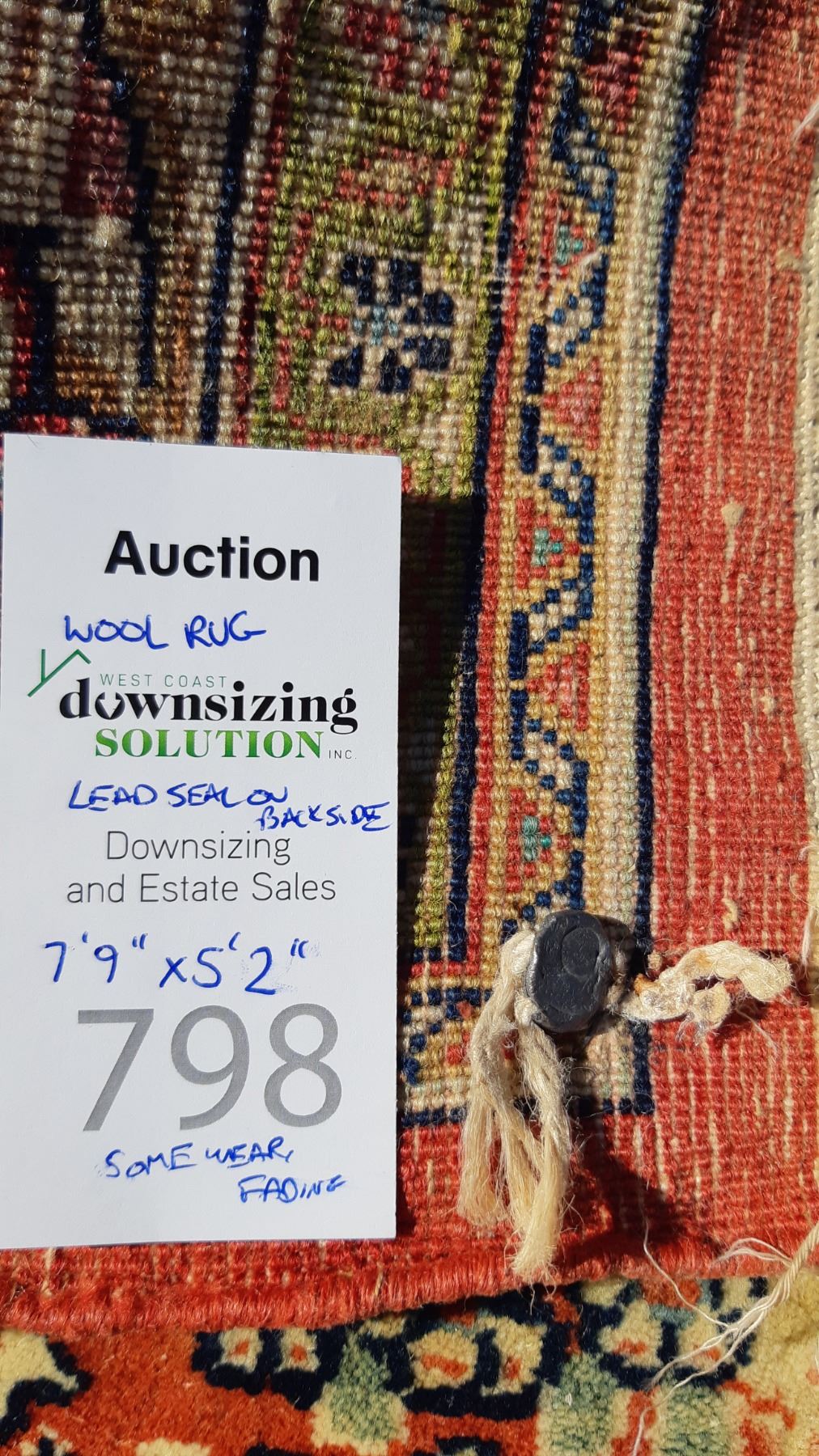 Lead seal on back 7'9"x5'2" some wear and fading. Pickup at 11 am