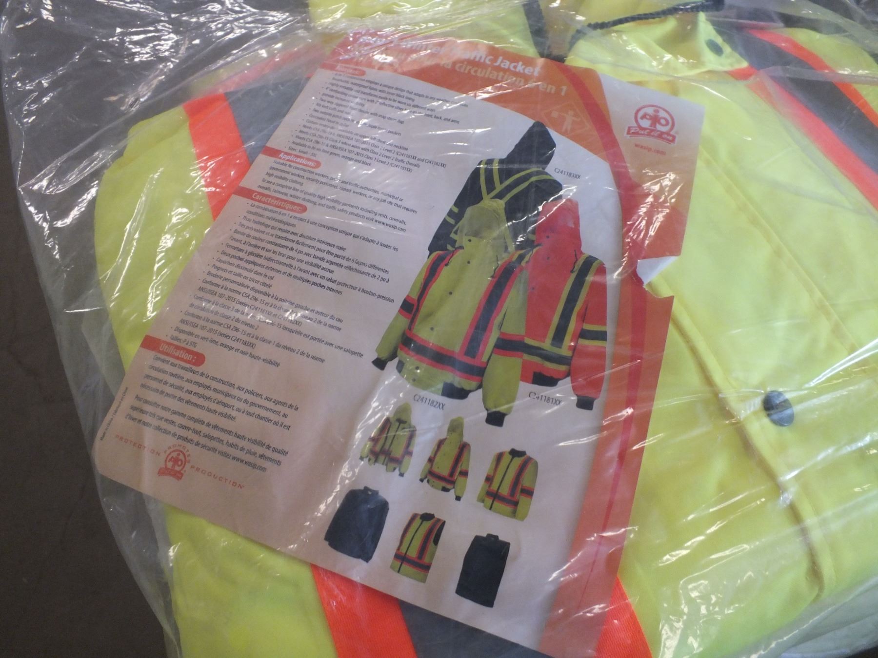 you get 2 52 reg orange coveralls, 3 size med traffic jackets, and 2 pairs of work gloves...new