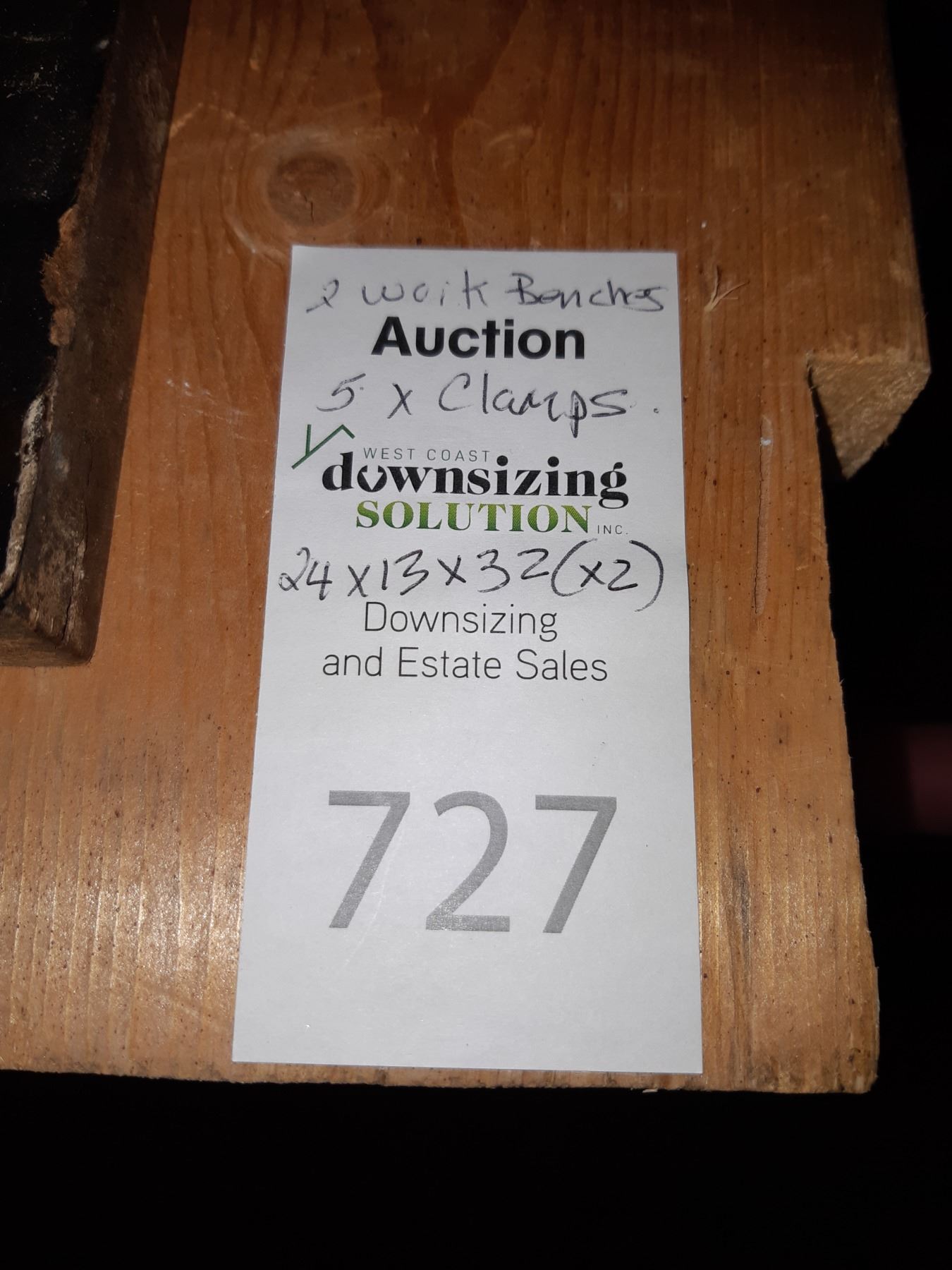 Two work benches, 24x13x32, and 5 clamps. Pickup at 9 am - 11 am