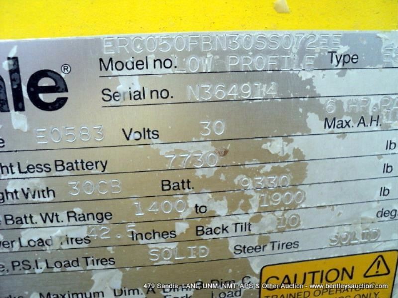 YALE 5000 LB ELECTRIC FORKLIFT ~ 282 HOURS MODEL LOW PROFILE ERC050FBN305s072EE