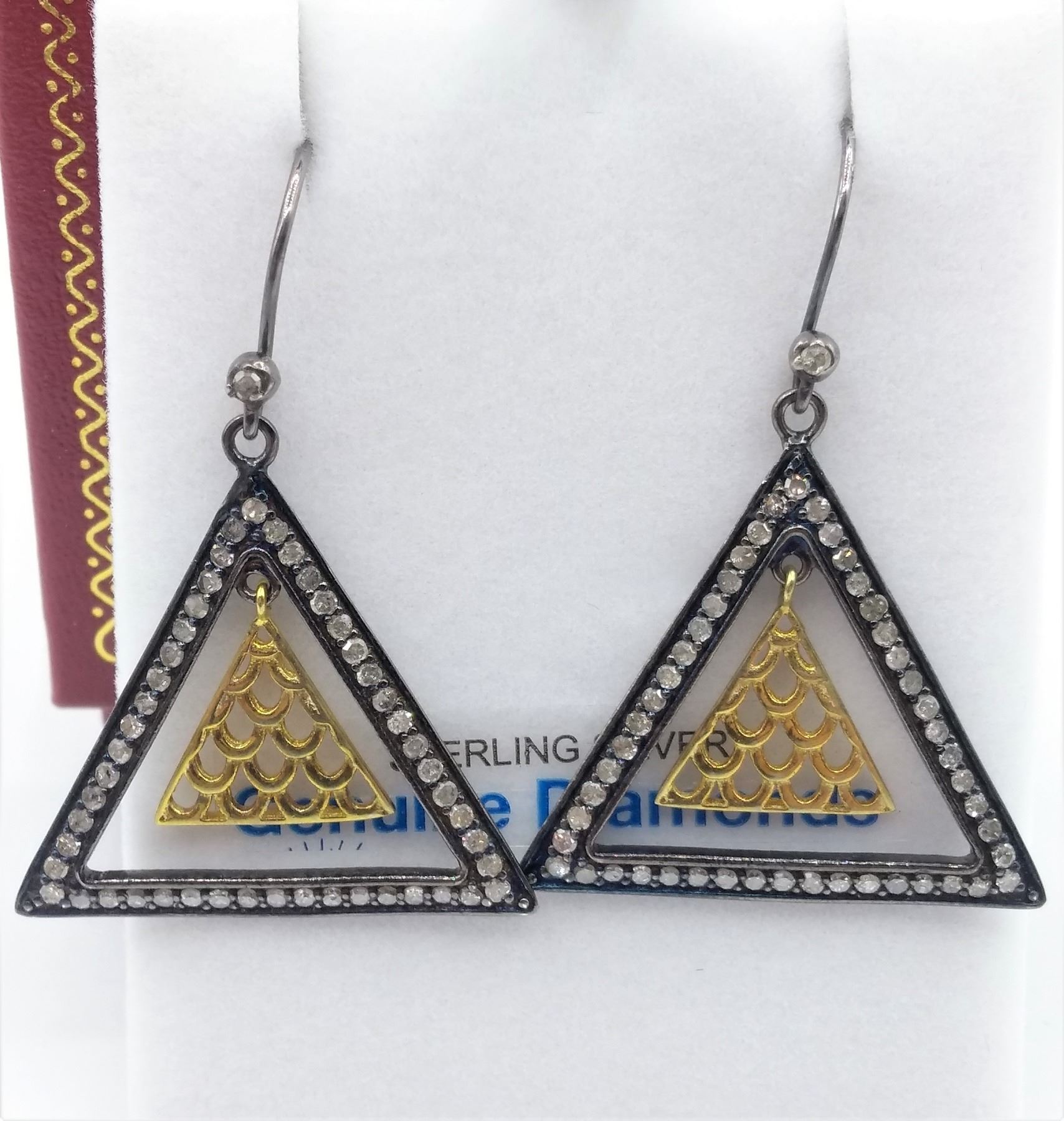 Yellow & Black Gold plated Sterling Silver Diamond Earrings, 98 Diamonds (1.31cts), With appraisal of $1700.00