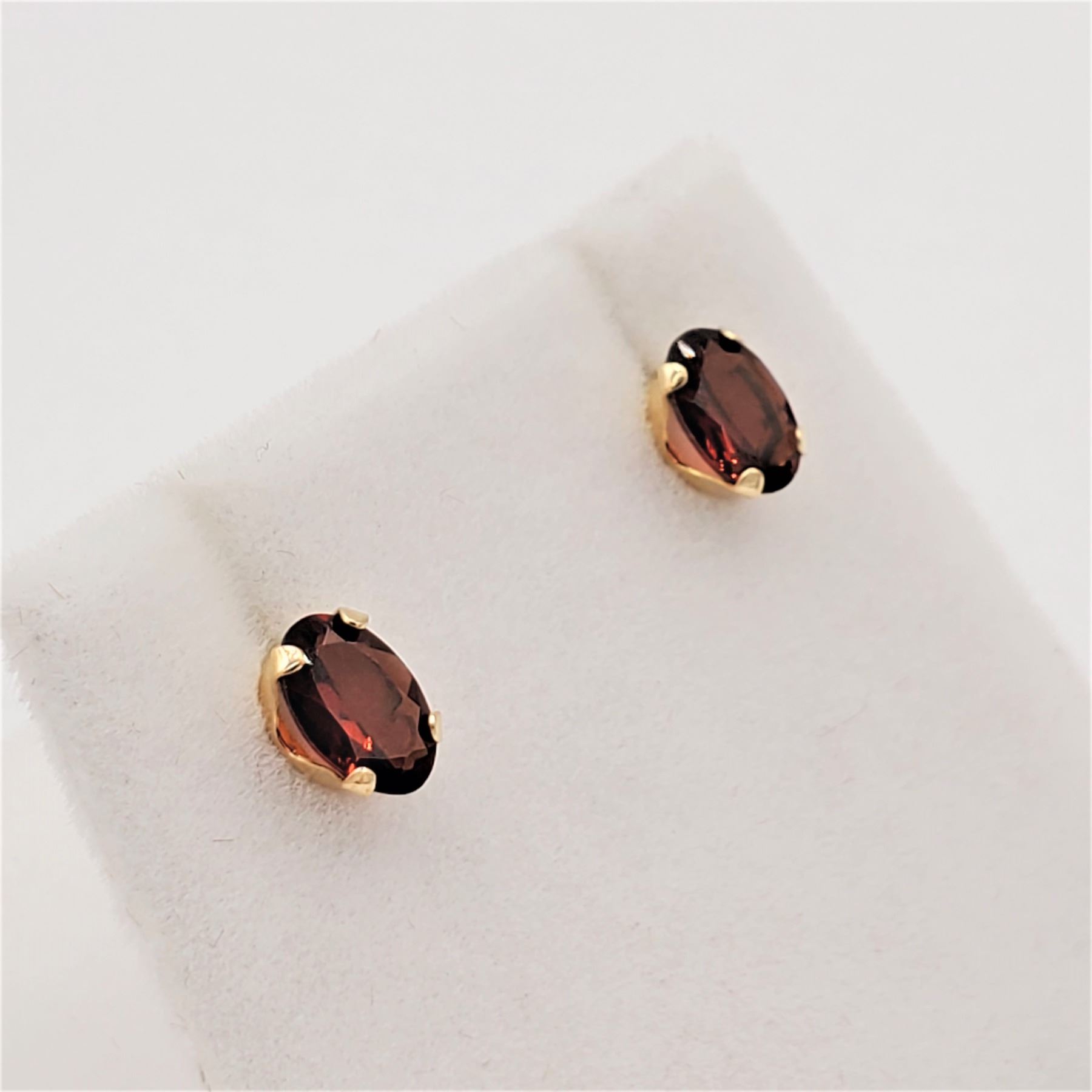 14kt. Yellow Gold 6mm x 4mm genuine Garnet stud Earrings, retail $300.00, Garnet is the birthstone for January.