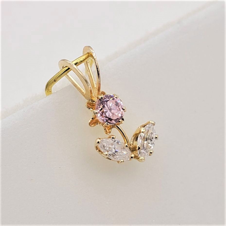 10kt. Yellow Gold Pink & White CZ Flower Pendant with Sterling chain, W/A $680.00