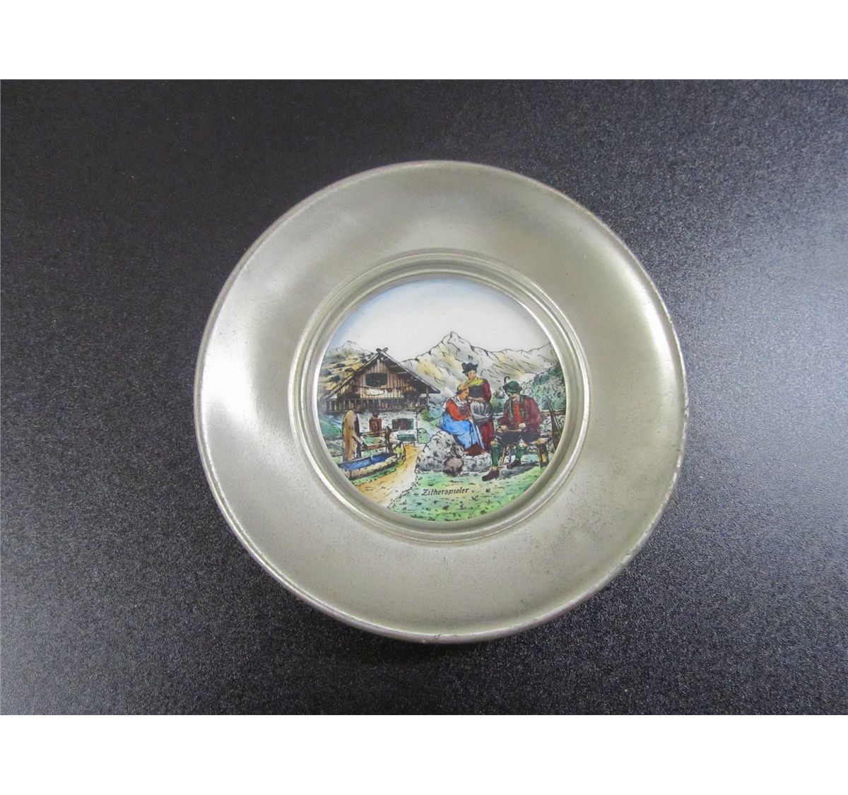 Zitherspieler Mini Plate With a Pewter Ein Zinn Wall Plate Holder